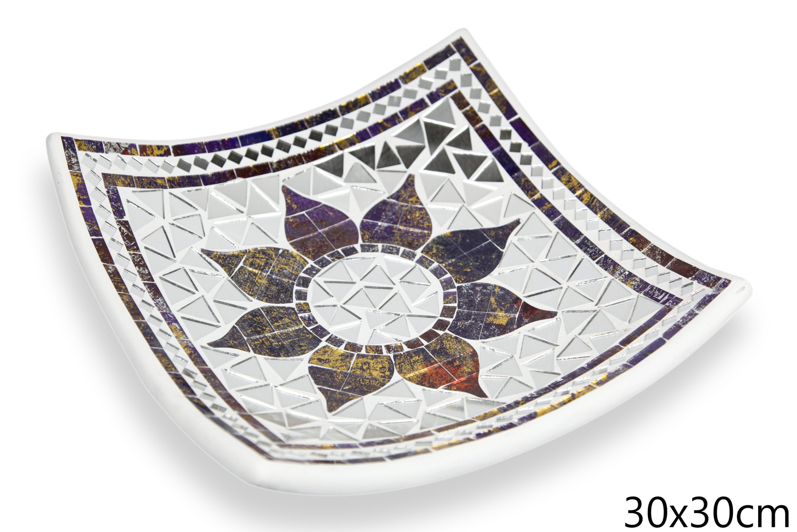Bijela zdjela sa crveno-zelenim crtama i zrcalnim rombovima, 15cm