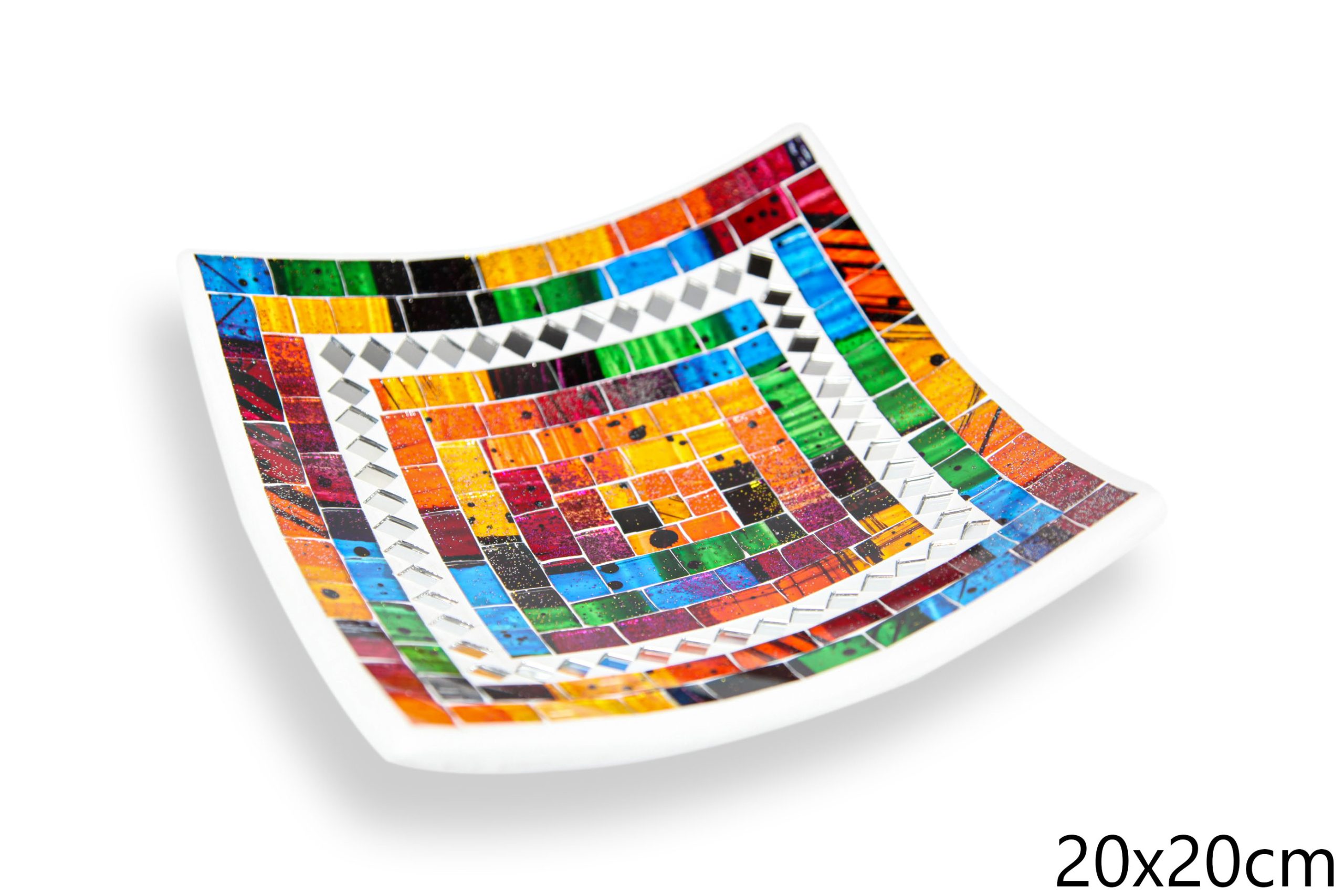 Bijela zdjela s raznobojim stakalcima i zrcalnim rombovima, 15cm