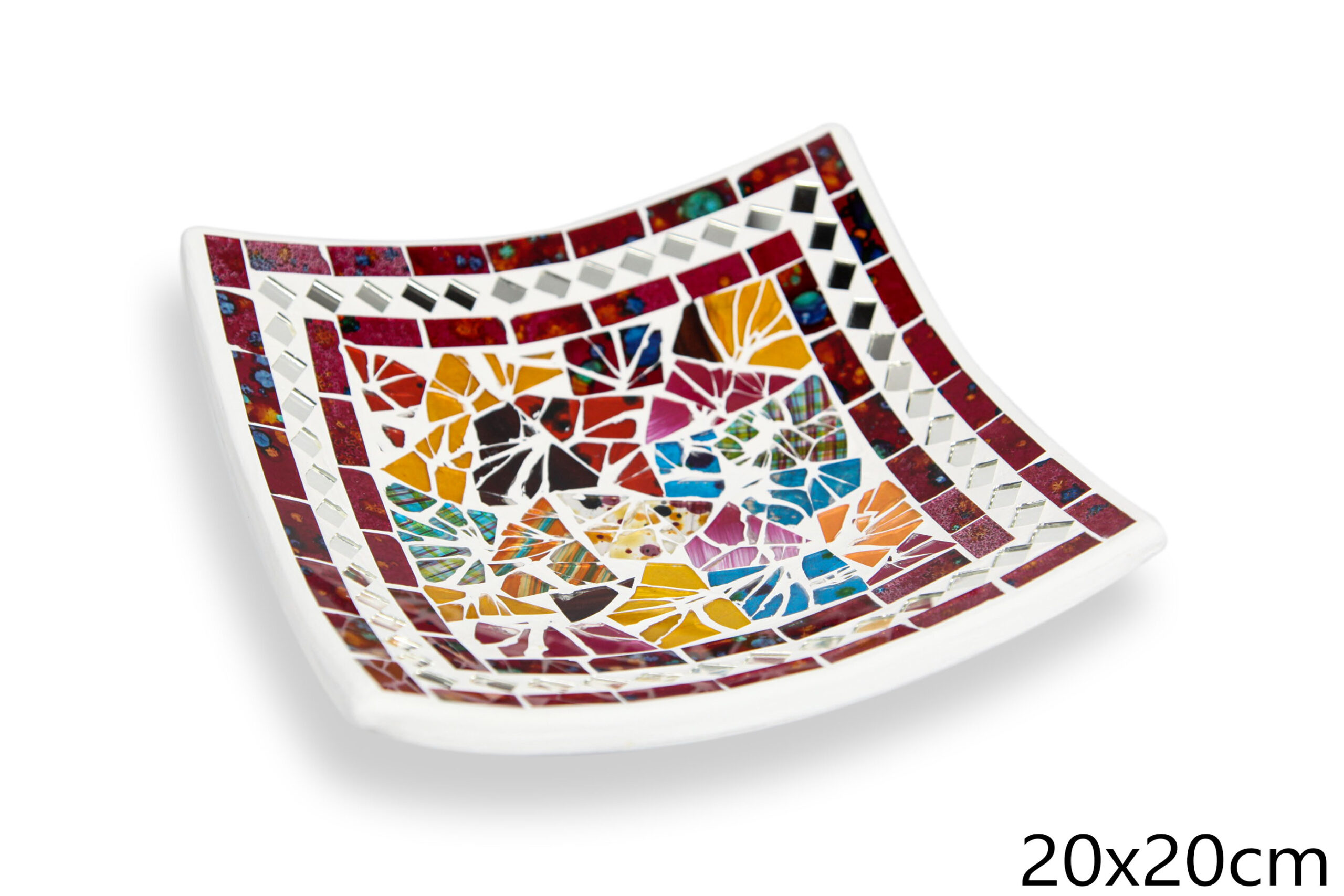 Bijela zdjela s raznobojim stakalcima i zrcalnim rombovima, 15cm