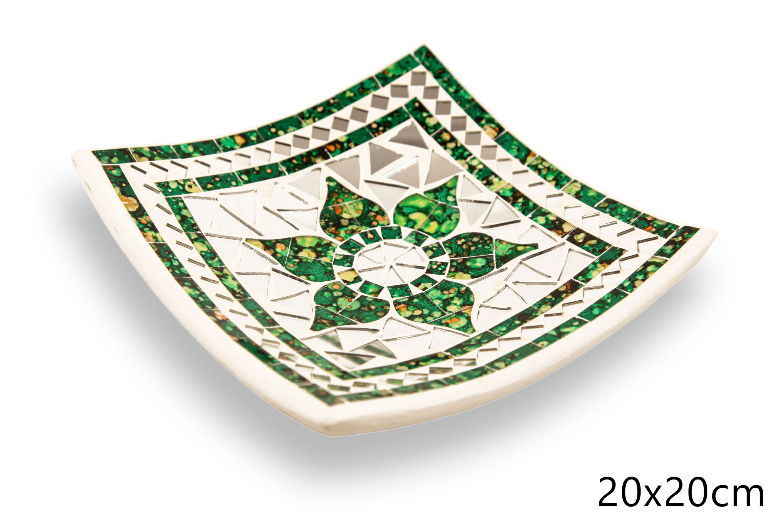 Bijela zdjela sa zelenim cvijetom i zrcalnim stakalcima, 20cm