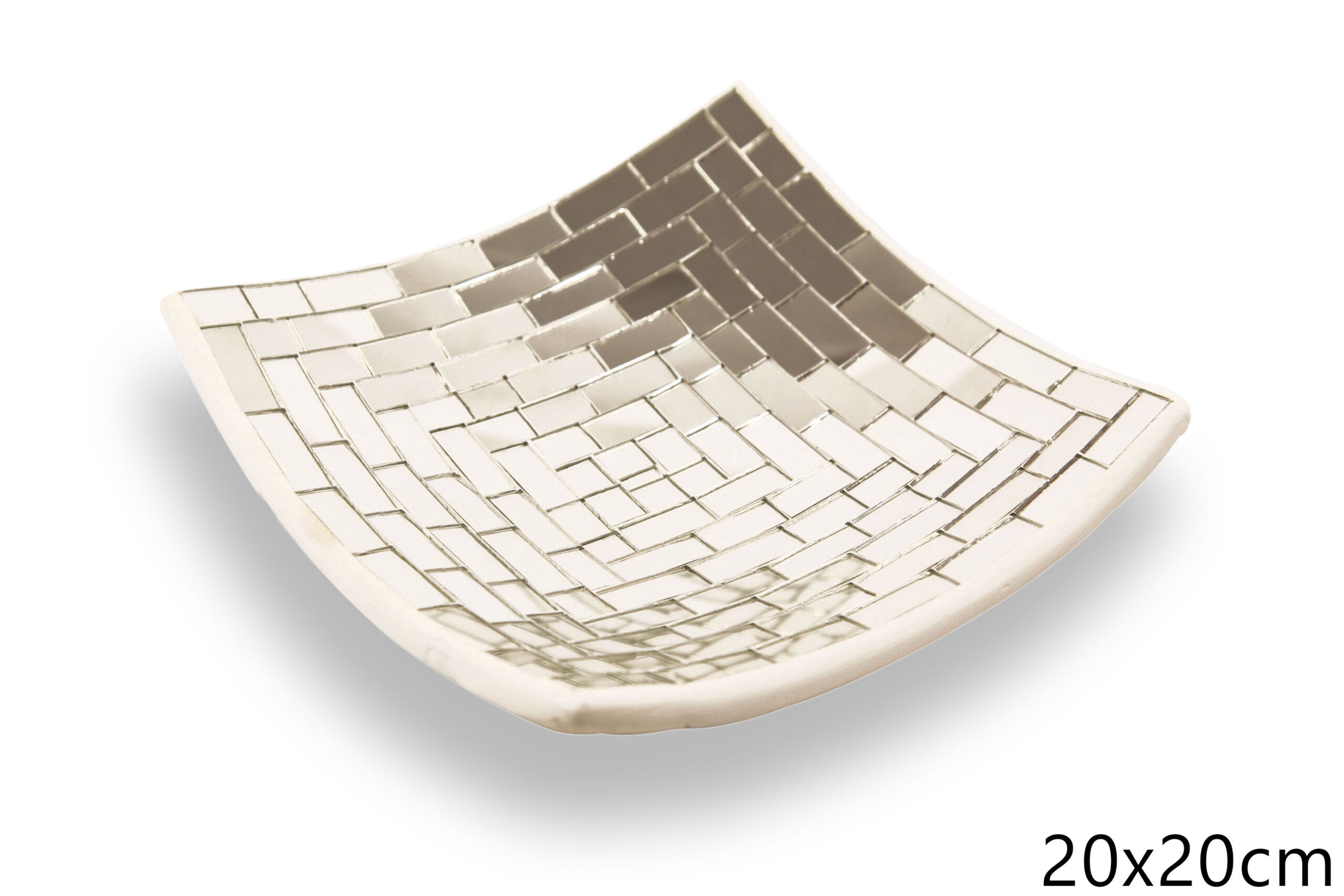 Bijela zdjela s dijagonalnim stakalcima i rombovima sa crvenim crtama, 20cm