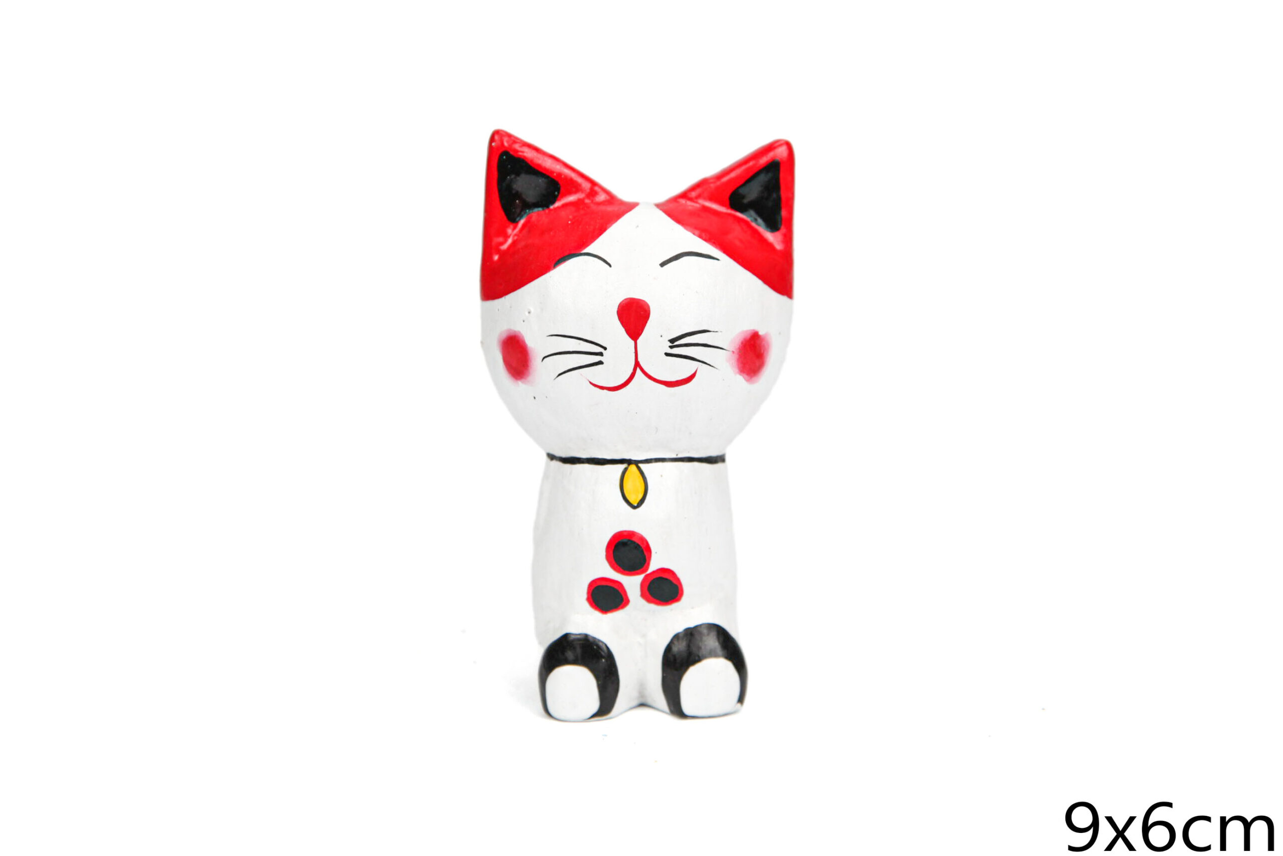 Naslovna » Trgovina » Suveniri od drva » Bijelo-crvena drvena nasmiješena maca