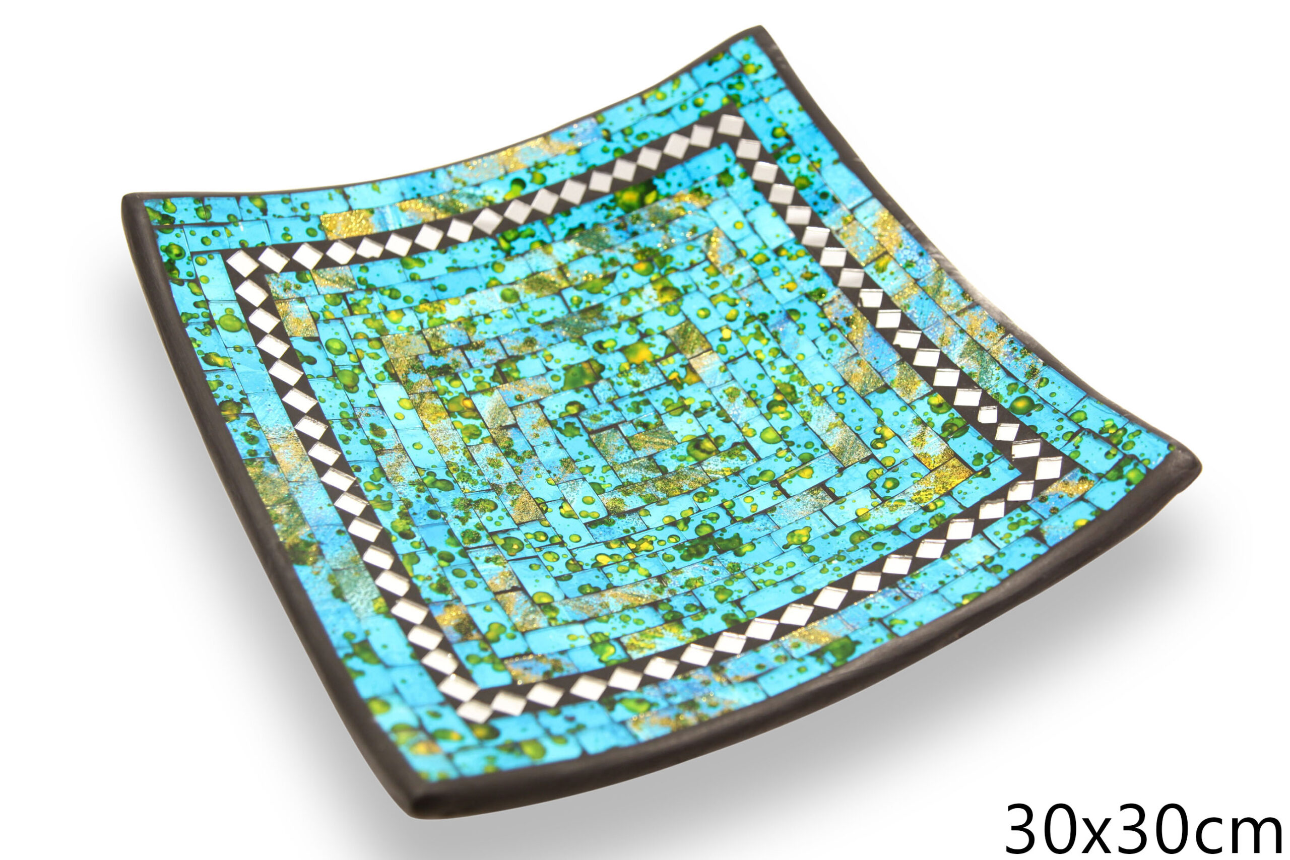 Crna zdjela s plavo-tirkiznim stakalcima i zrcalnim rombovima, 30cm