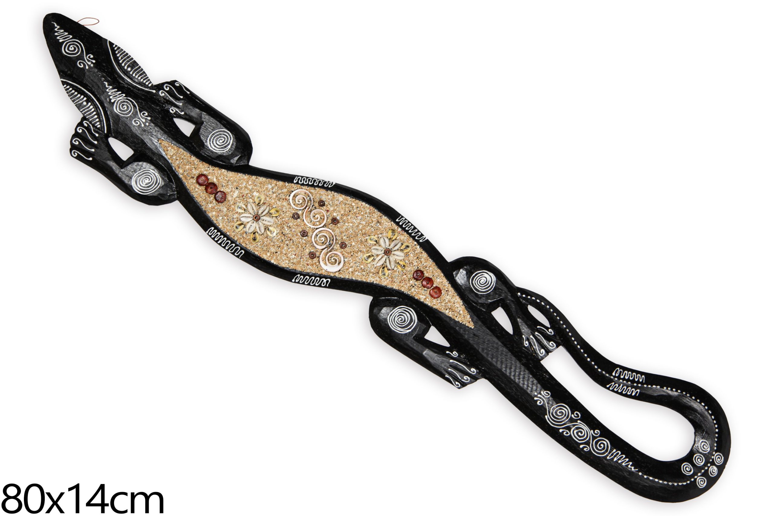 Crni gušter sa crvenim stakalcima, pijeskom i školjkicama