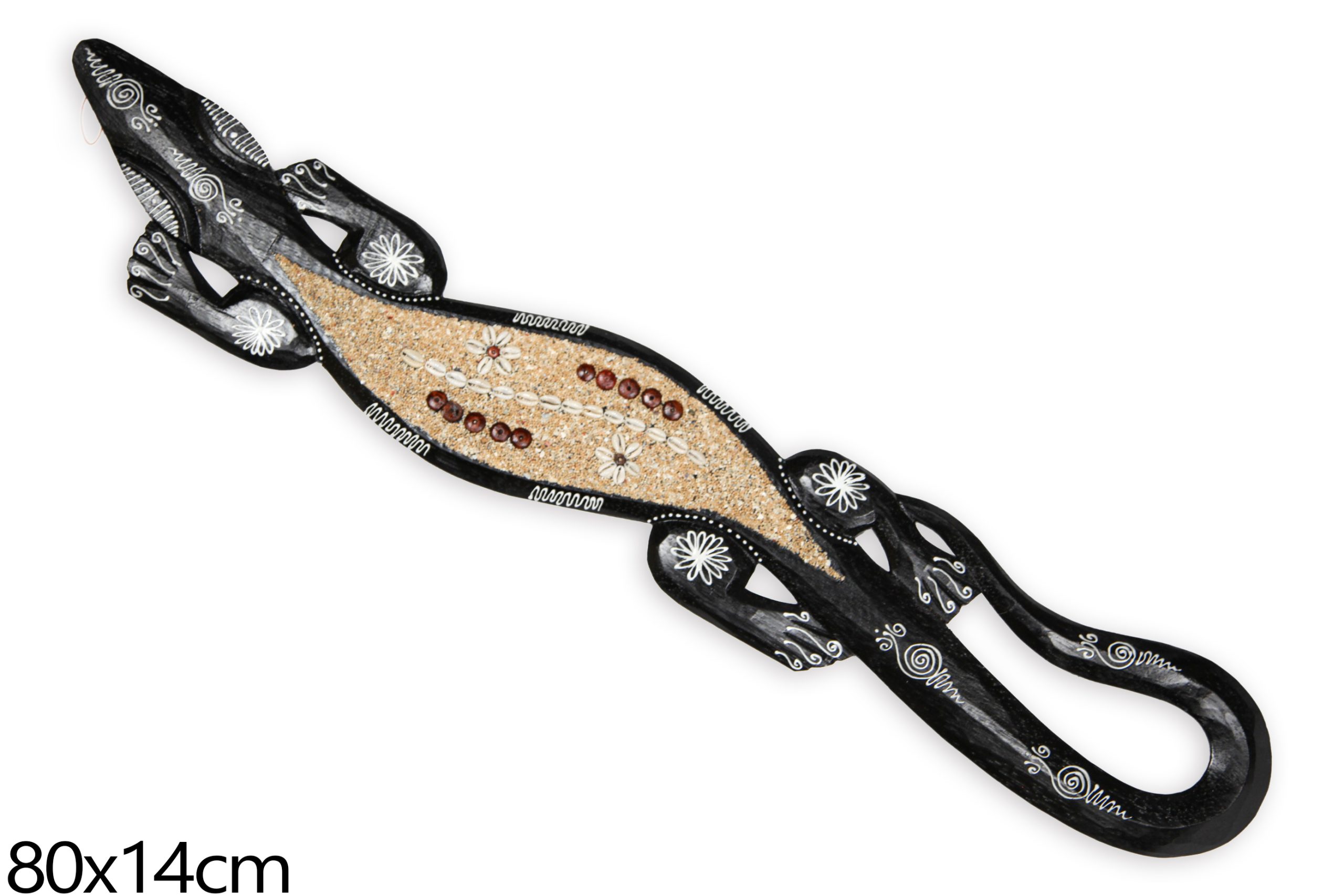 Naslovna » Trgovina » Suveniri od drva » Crni gušter s bijelim detaljima, pijeskom i školjkama, 80cm
