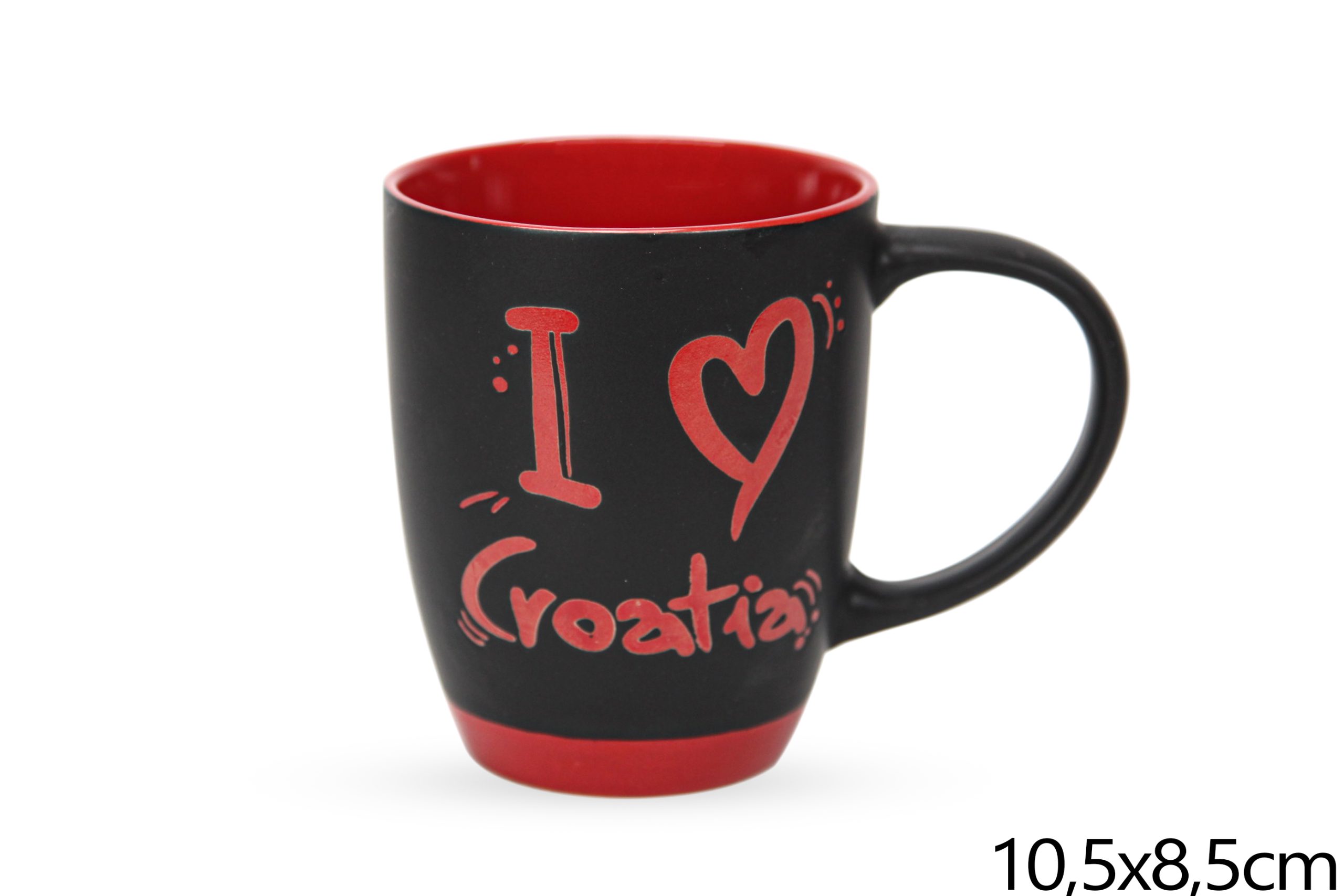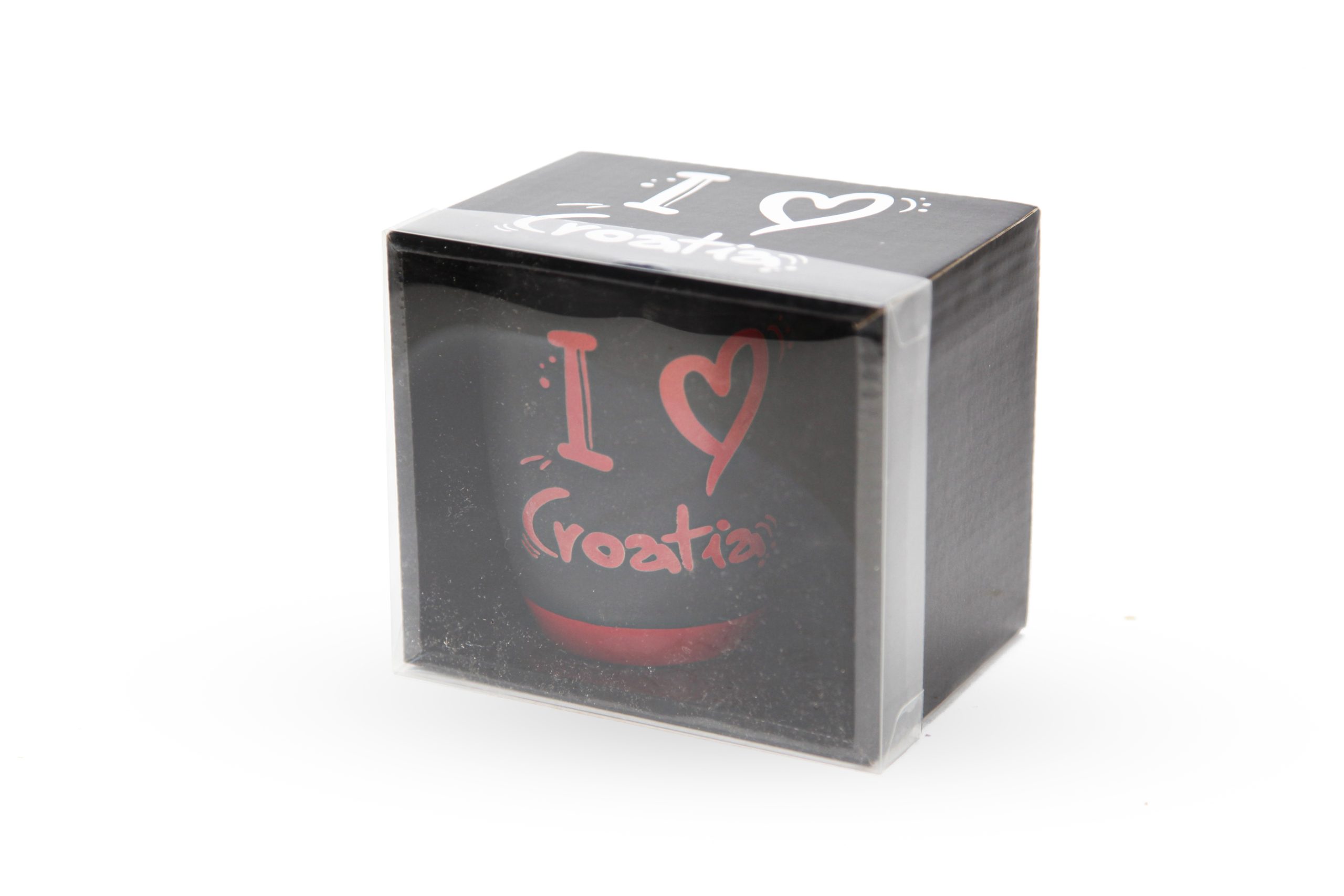 Bijelo-plava keramička šalica s ribom i natpisom, Croatia