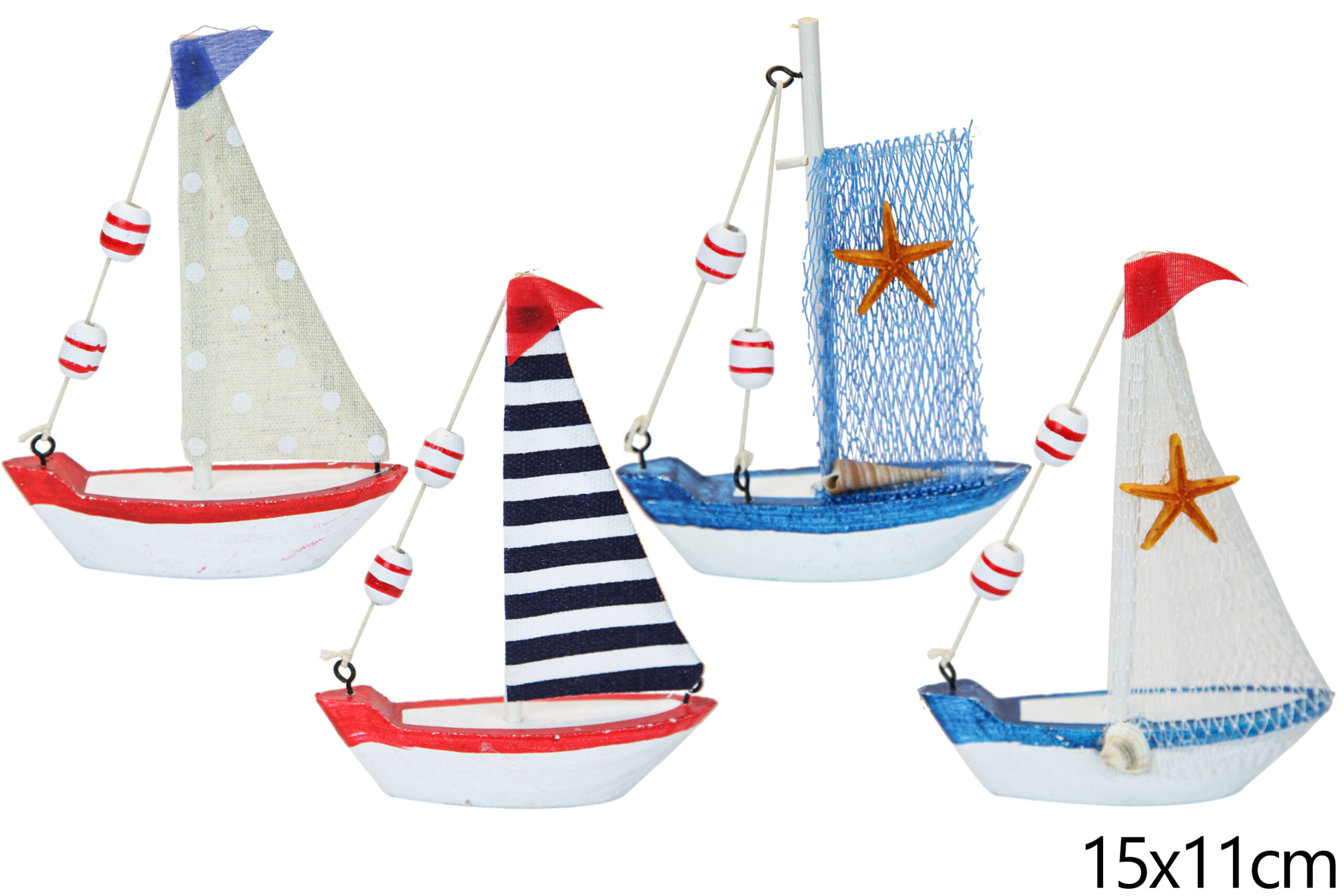 Bijele jedrilice s jedrima na bijelo-plave pruge (SET 2 kom.)