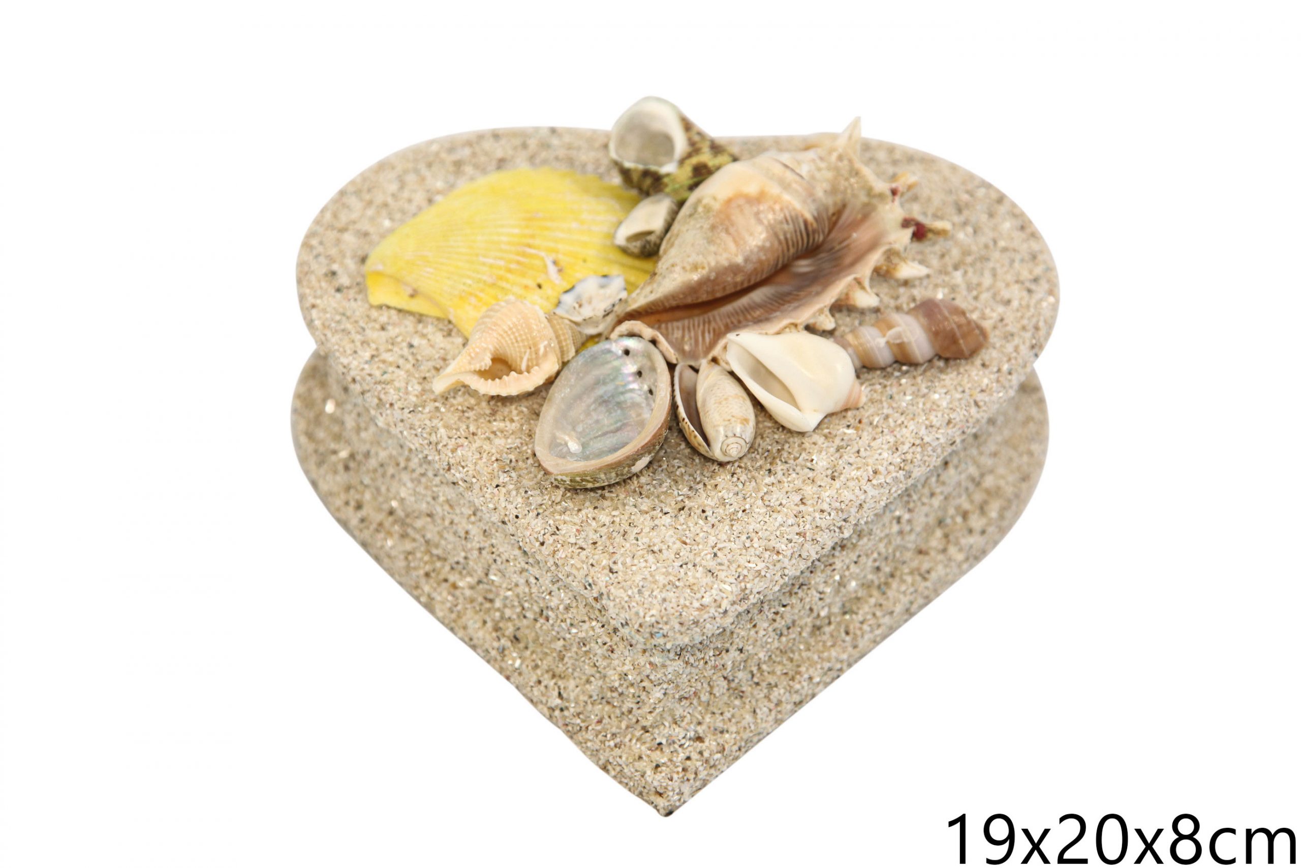 Naslovna » Trgovina » Ukrasne kutije » Drvena kutija u obliku srca s pijeskom i školjkama, veća