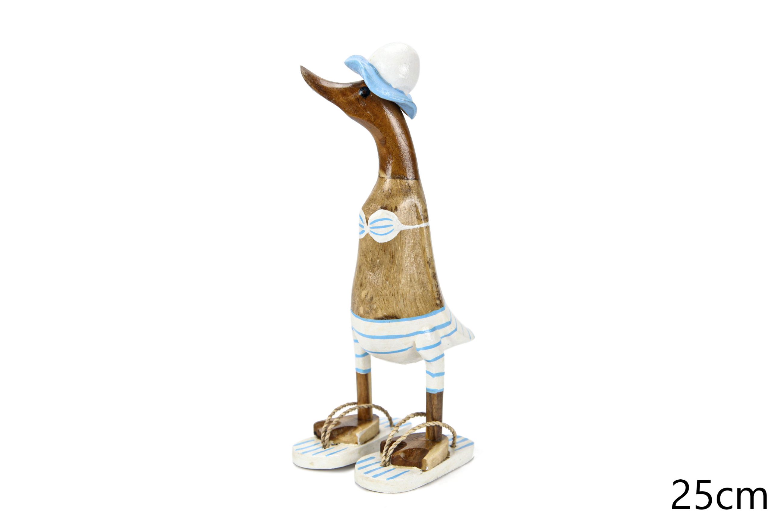 Drvena patka u svijetlo plavom kupaćem kostimu