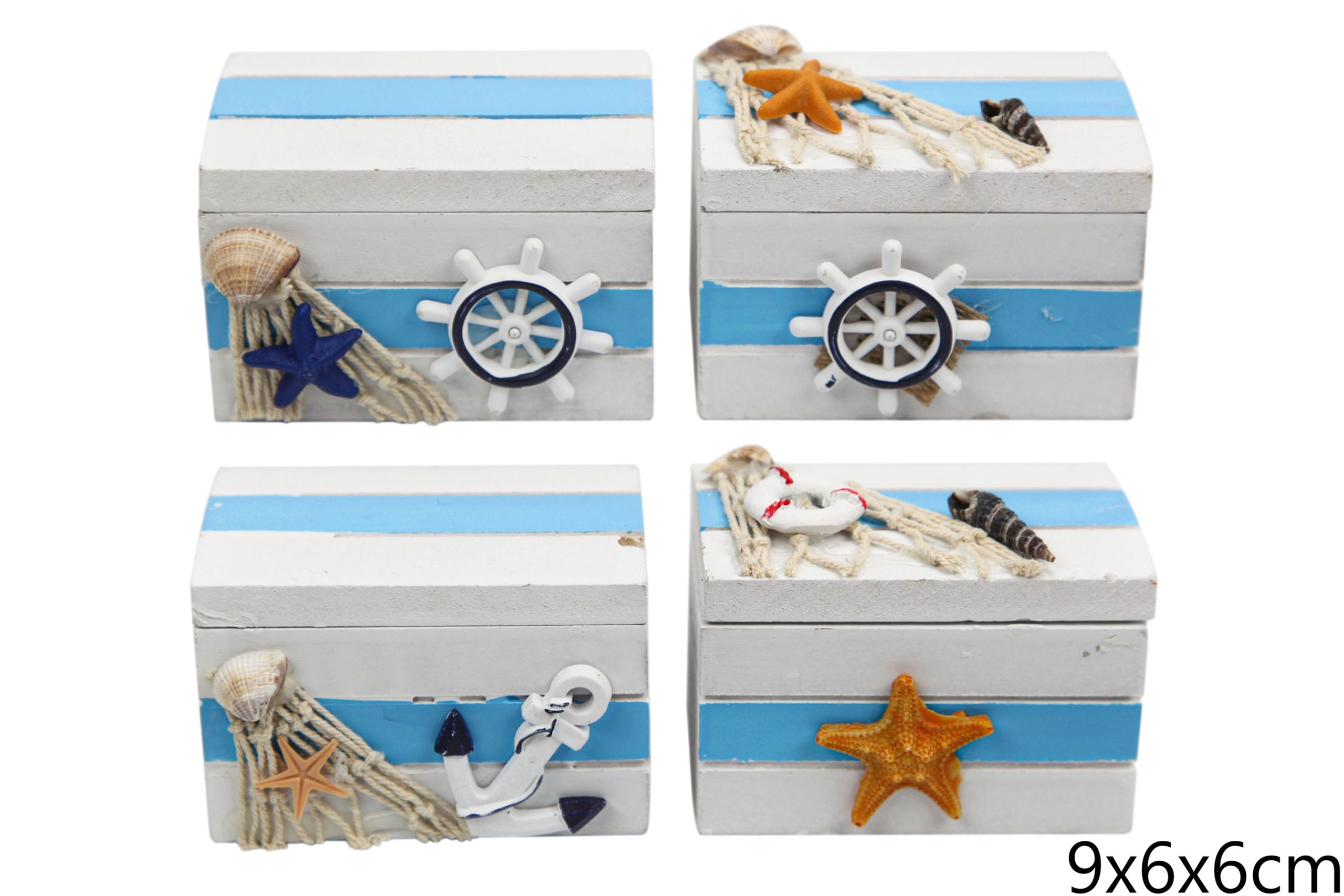 Drveni plavi sanduci s pijeskom i morskim motivima, M (SET 4 kom.)