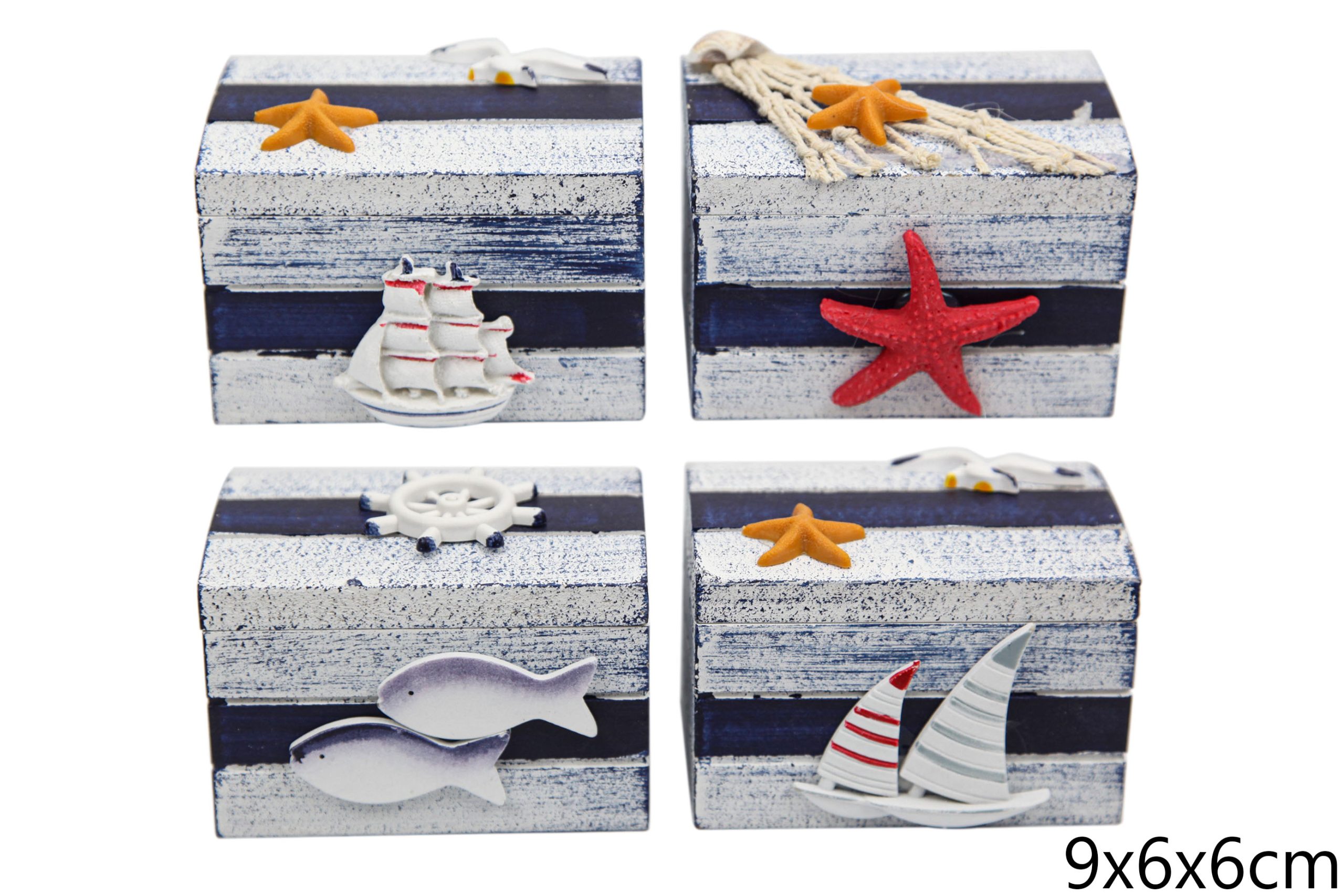 Drvena kutija u obliku zvijezde s pijeskom i školjkama, manja