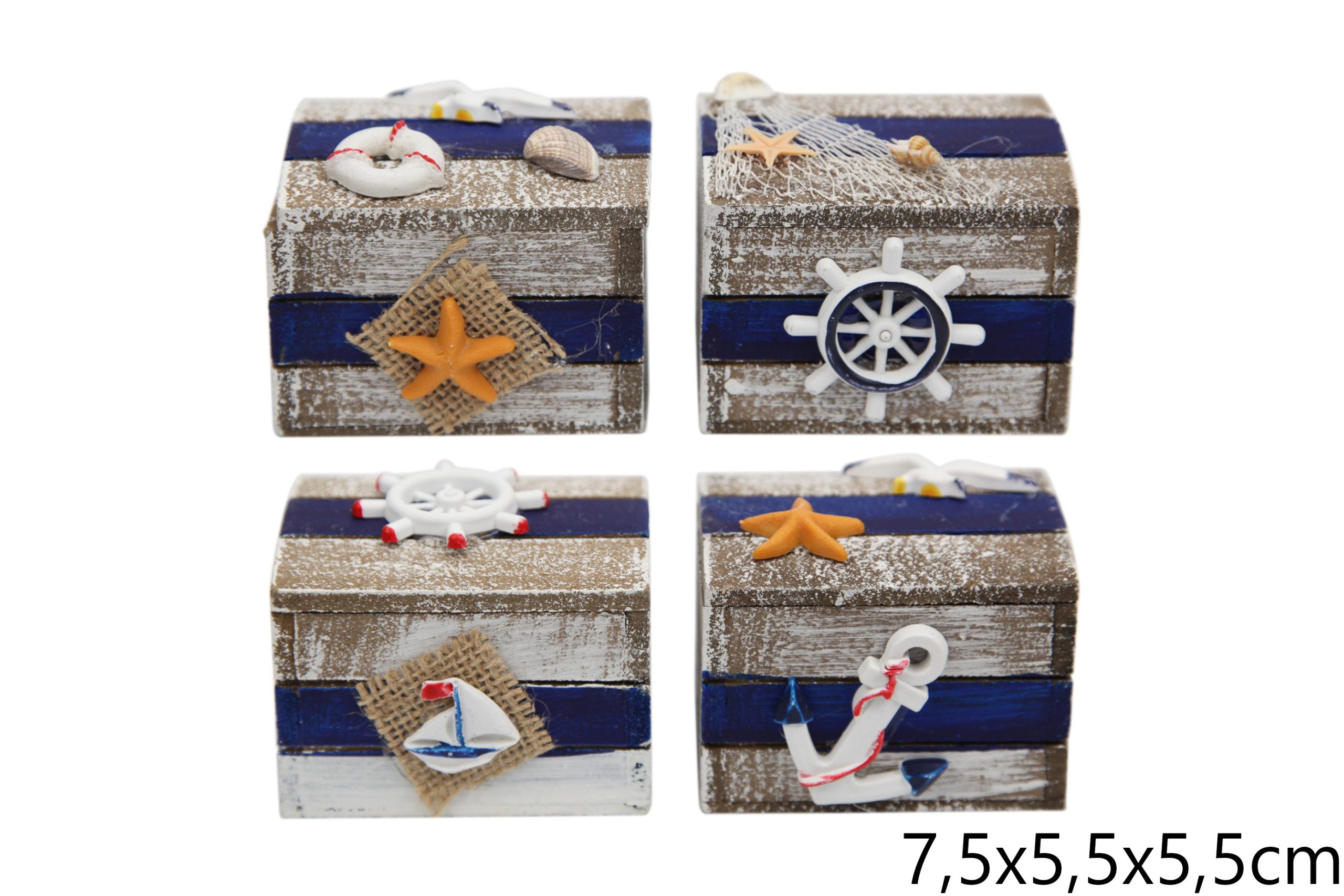 Drvene bijelo-plave raspucane kutijice s morskim motivima, S (SET 4 kom.)