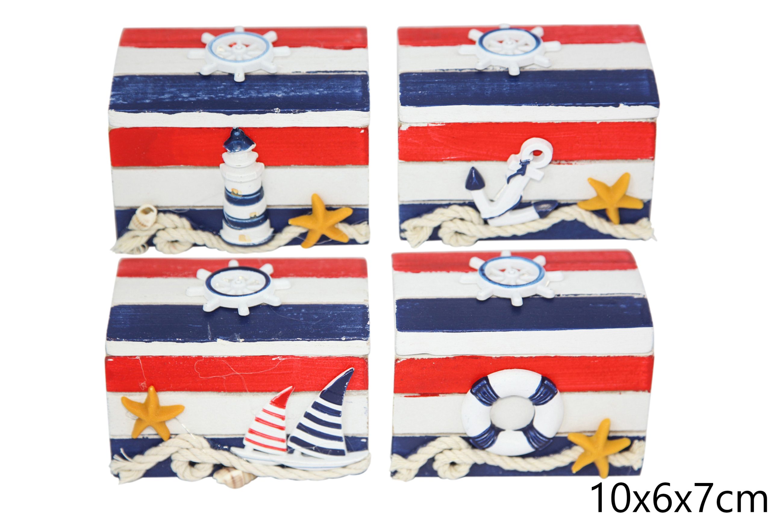 Drvene crveno-bijelo-plave kutijice s morskim motivima, M (SET 12 kom.)