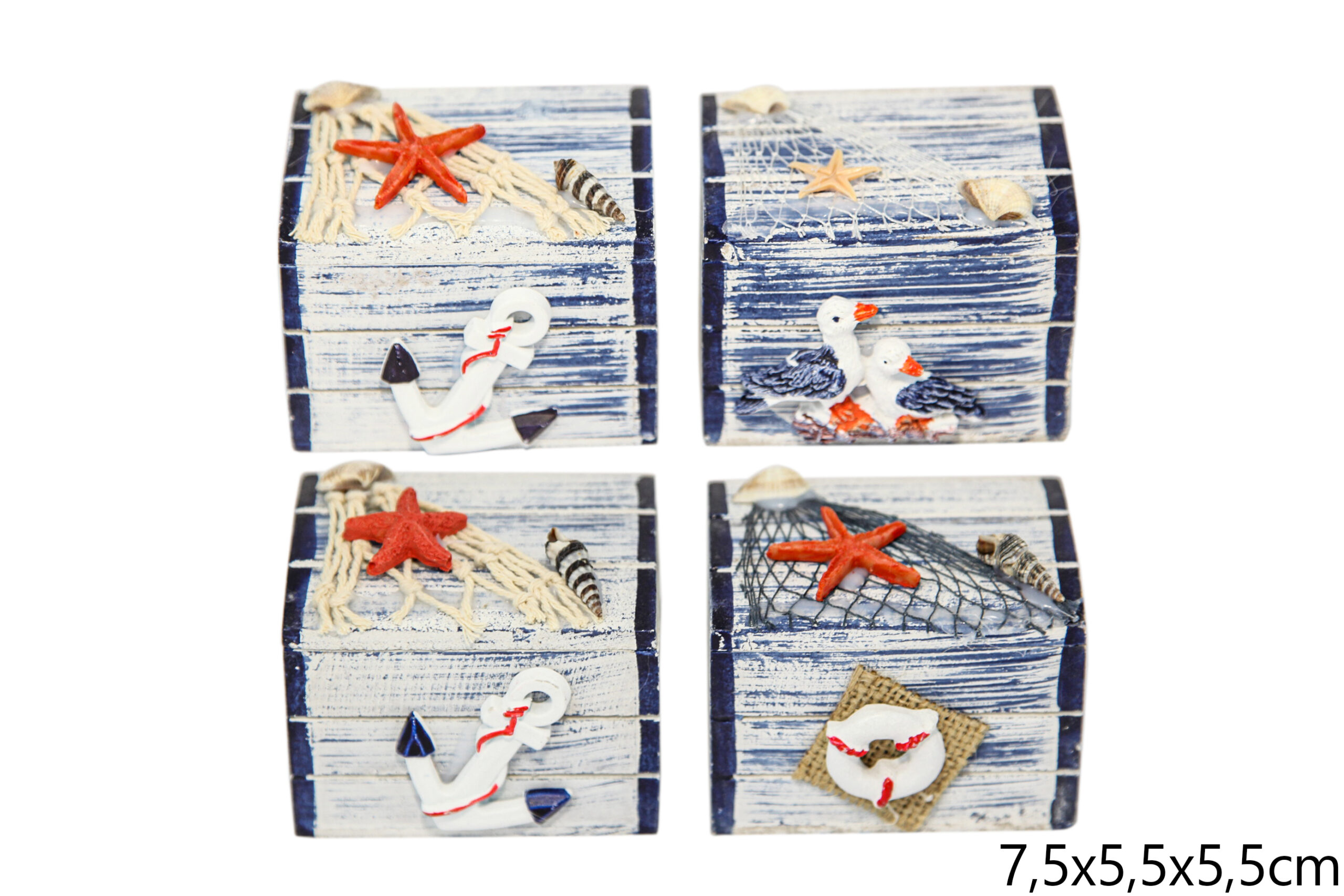 Drvene natural-plave kutijice s morskim motivima, S (SET 4 kom.)