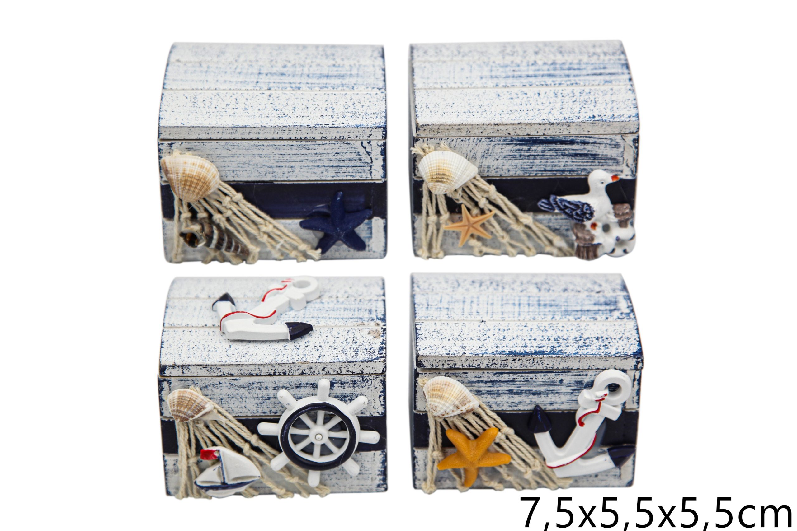 Drvene sivo-plave kutijice s morskim motivima, S (SET 4 kom.)