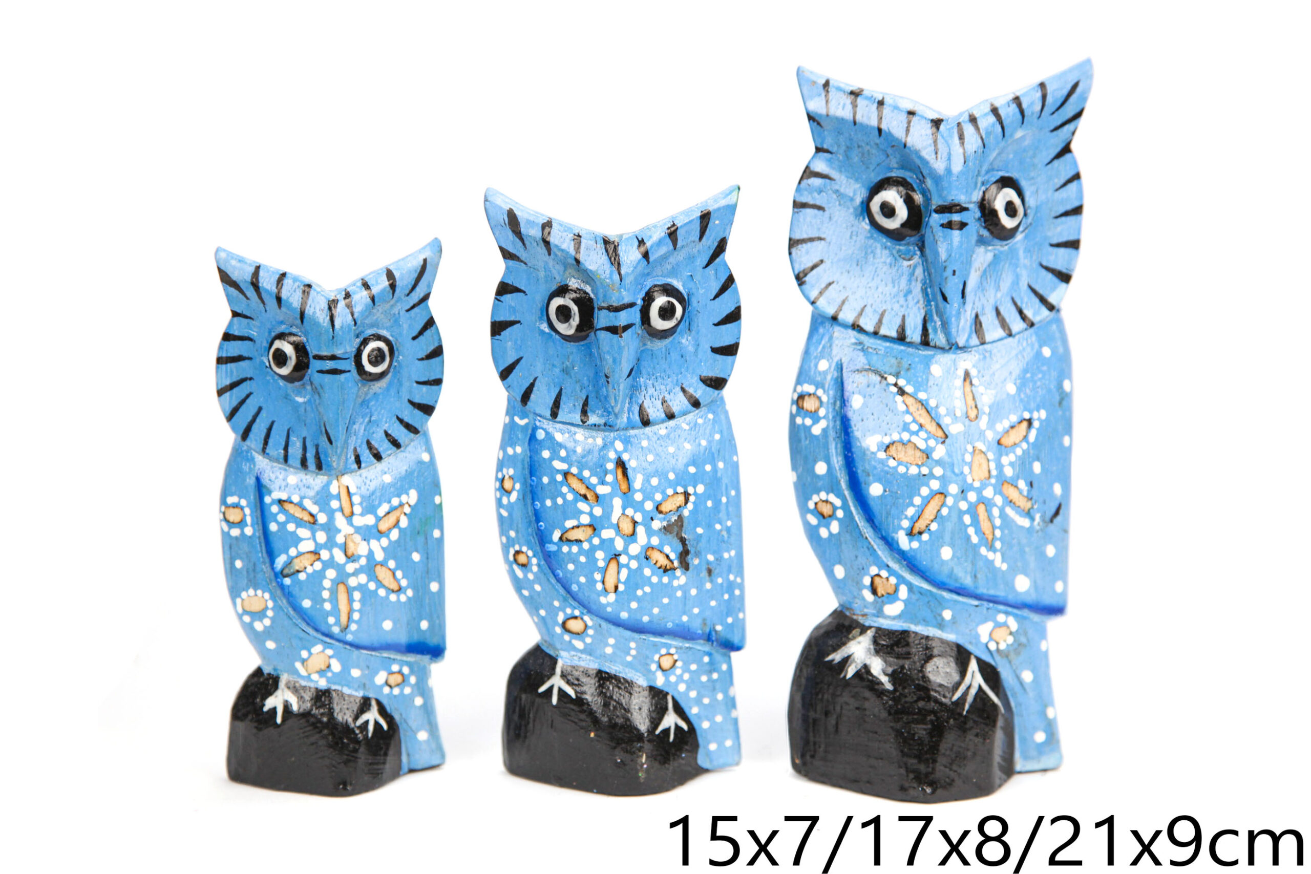 Drvene uspravne sove s ukrasima (SET 3 kom.)