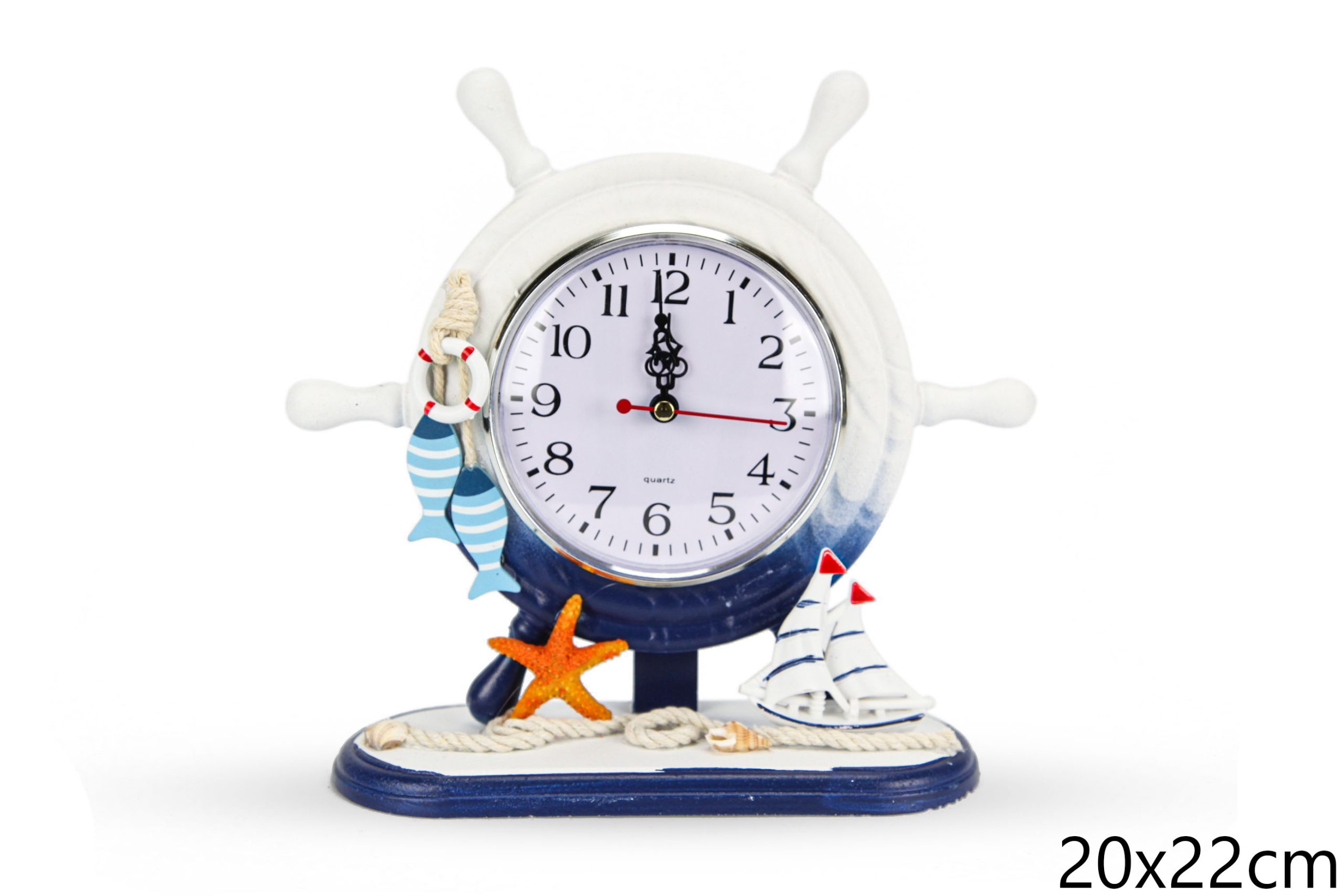 Drveni bijelo-tirkizni uspravni satovi kormilo u sidru (SET 2 kom.)