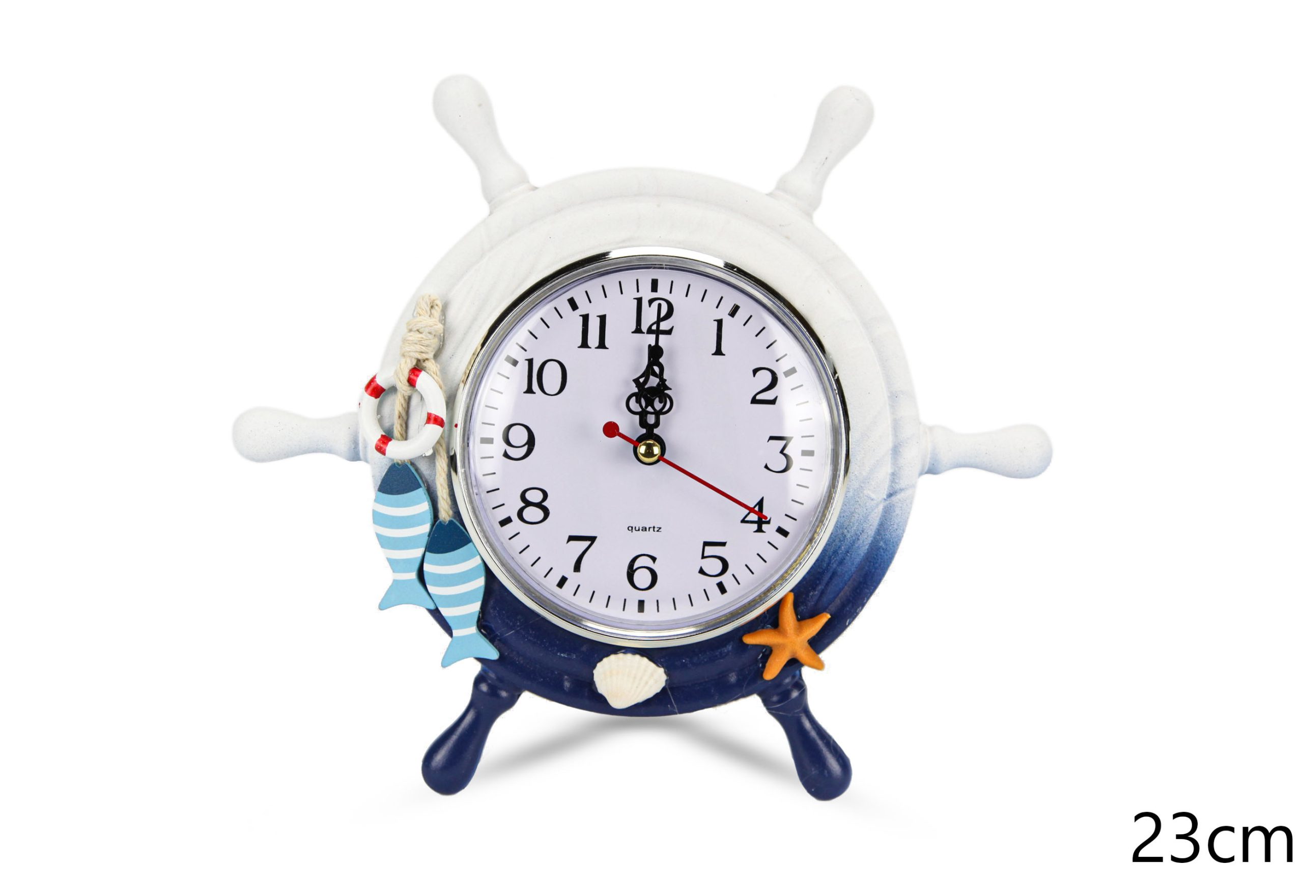 Drveni bijelo-plavi satovi nakrivljeno kormilo u sidru (SET 2 kom.)
