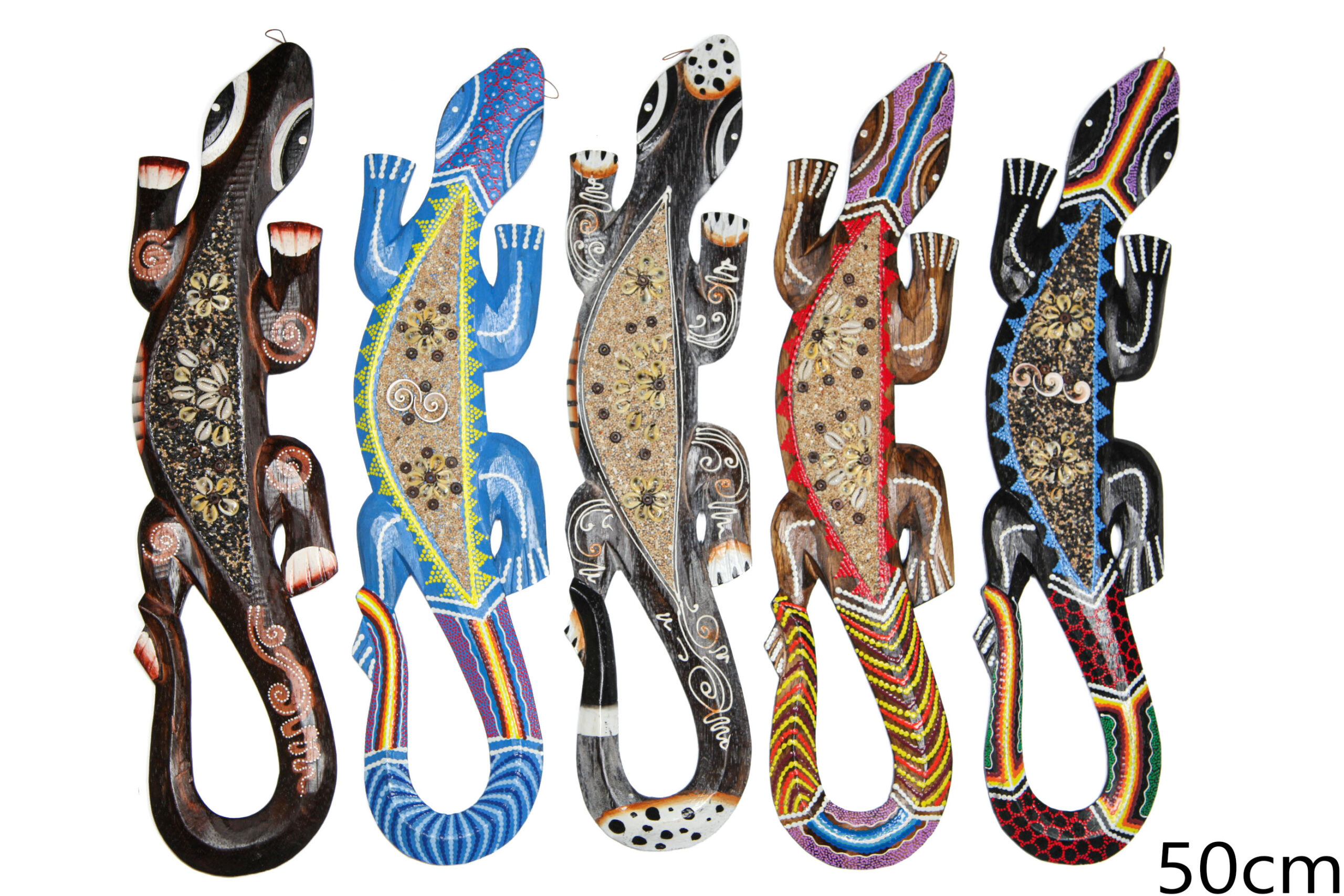 Naslovna » Trgovina » Suveniri od drva » Drveni gušteri s pijeskom i školjkama, 50cm
