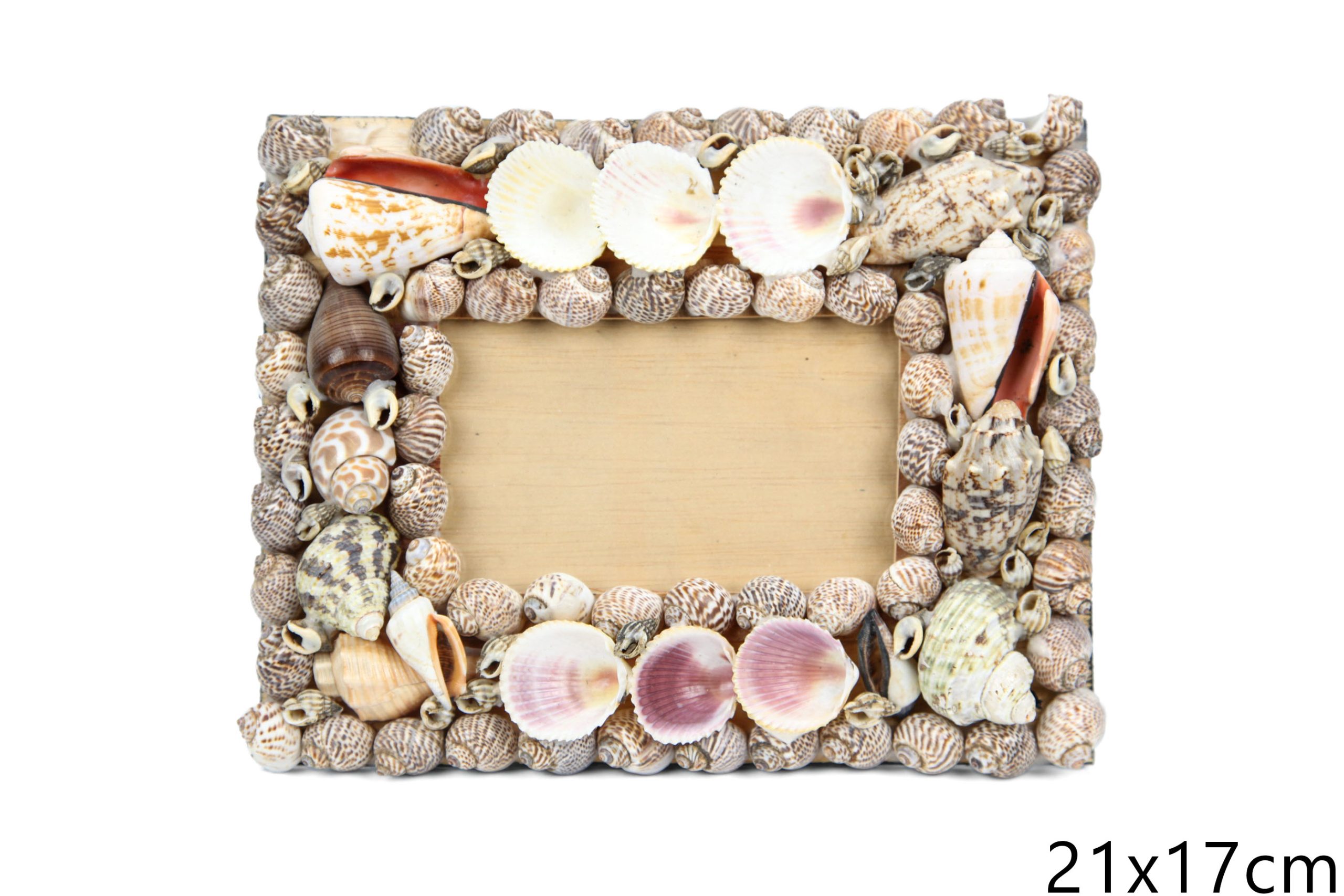 Naslovna » Trgovina » Okviri » Drveni okvir s raznim većim i manjim školjkama i bijelim lepezama