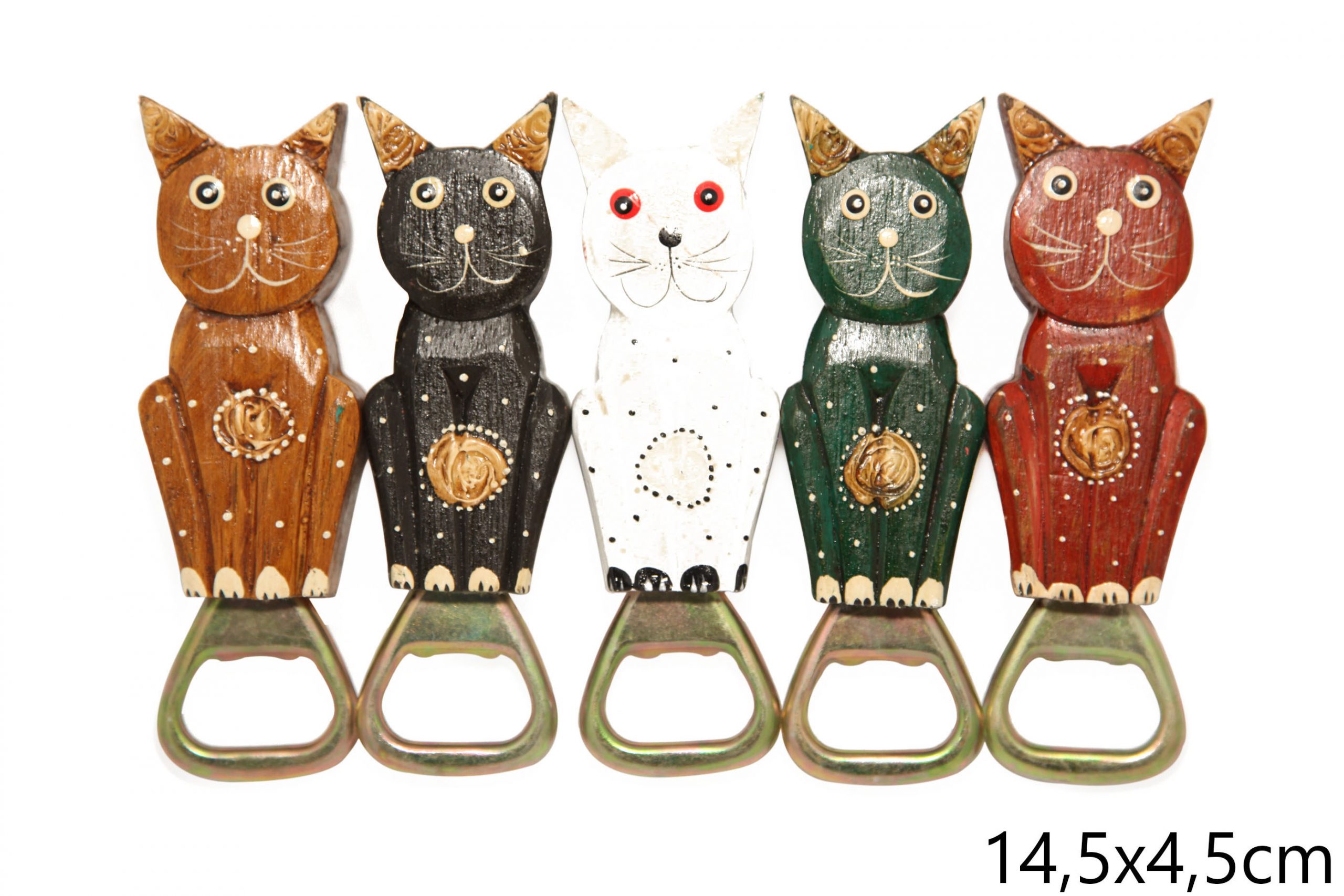 Drveni otvarači sjedeće mačke u raznim bojama (SET 5 kom.)