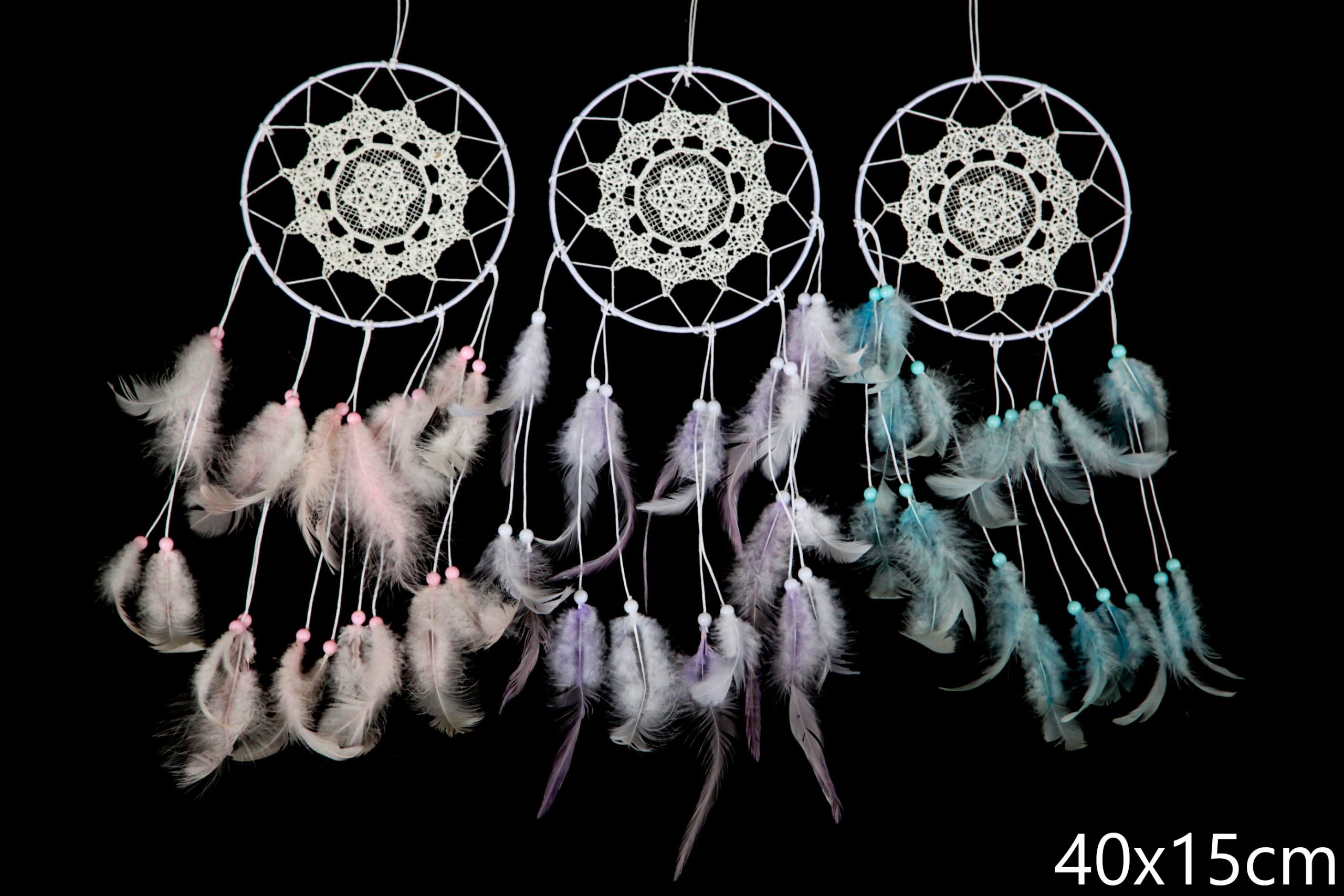 Hvatači snova sa čipkom u krugu, te raznobojnim perjem (SET 6 kom.)