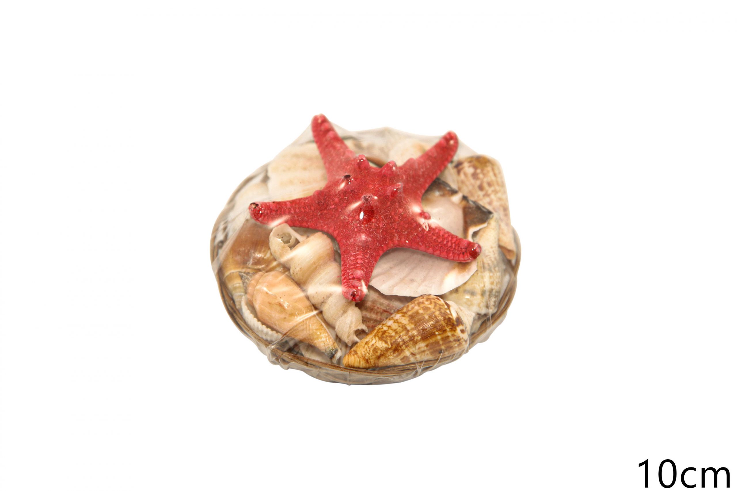 Naslovna » Trgovina » Školjke » Košare i mreže sa školjkama » Košara 4″ sa školjkama i crvenom morskom zvijezdom