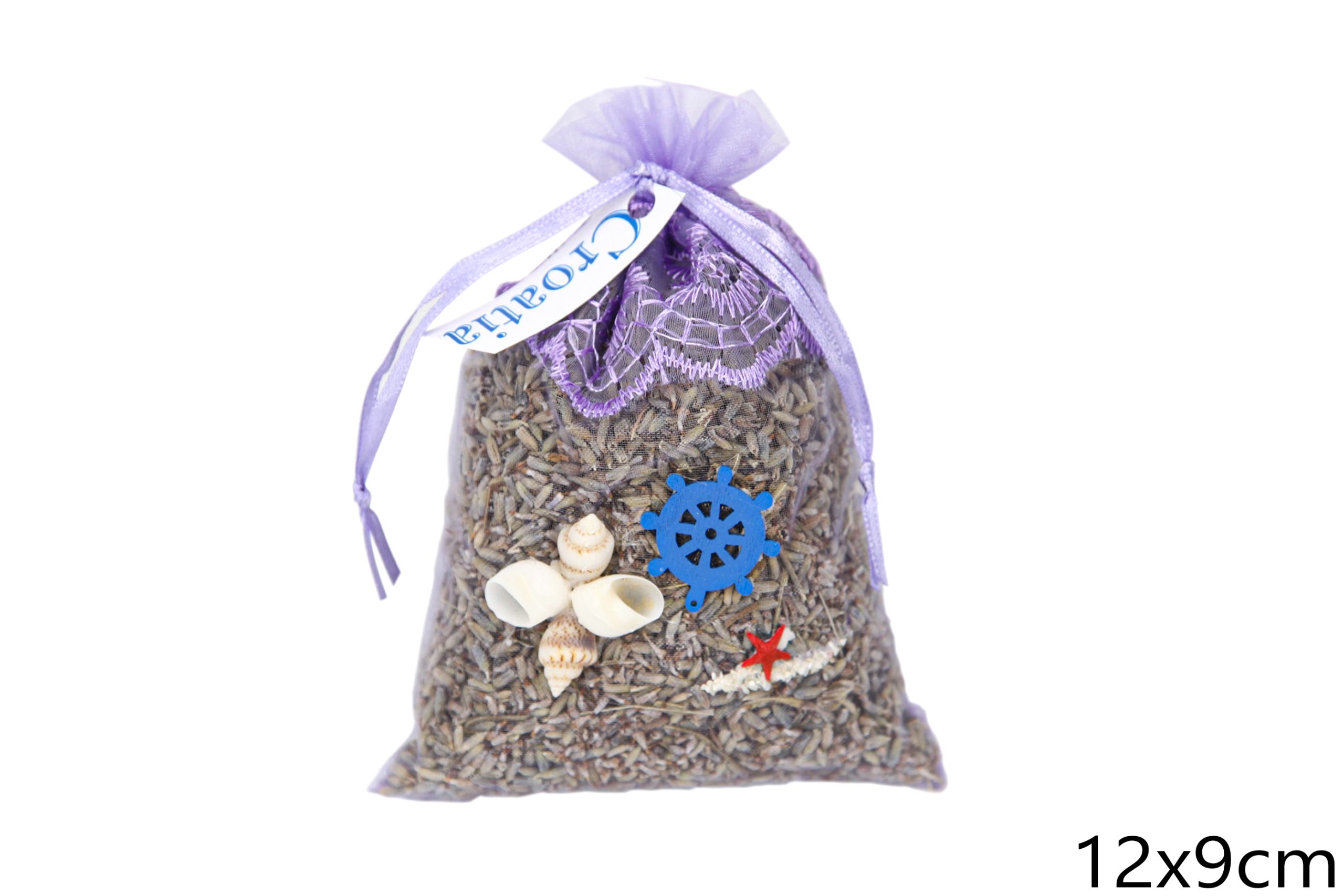 Lavanda u ljubičastoj organza vrećici sa školjkicama