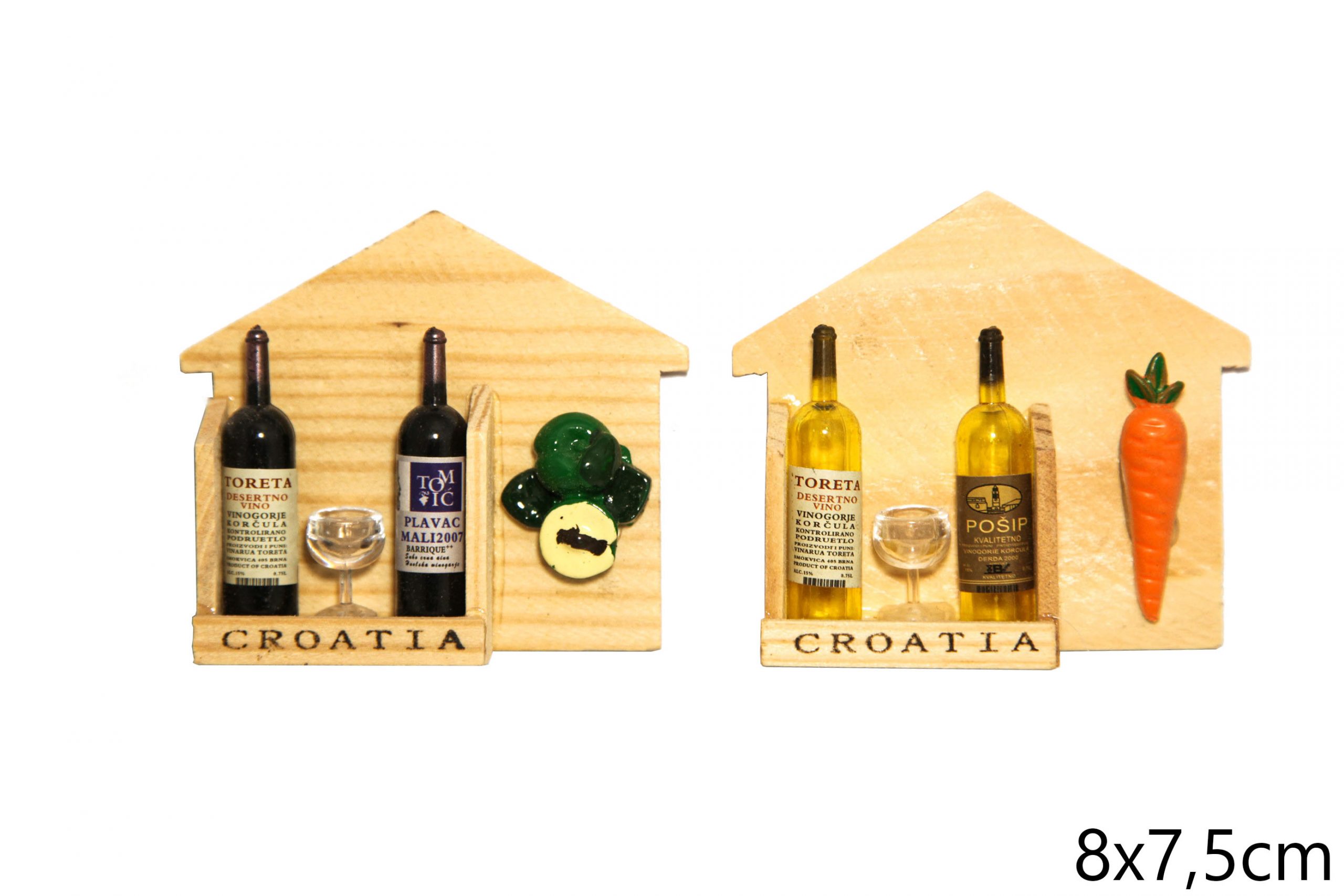 Magnet hrvatska vina s čašom na silueti drvene kuće, Croatia