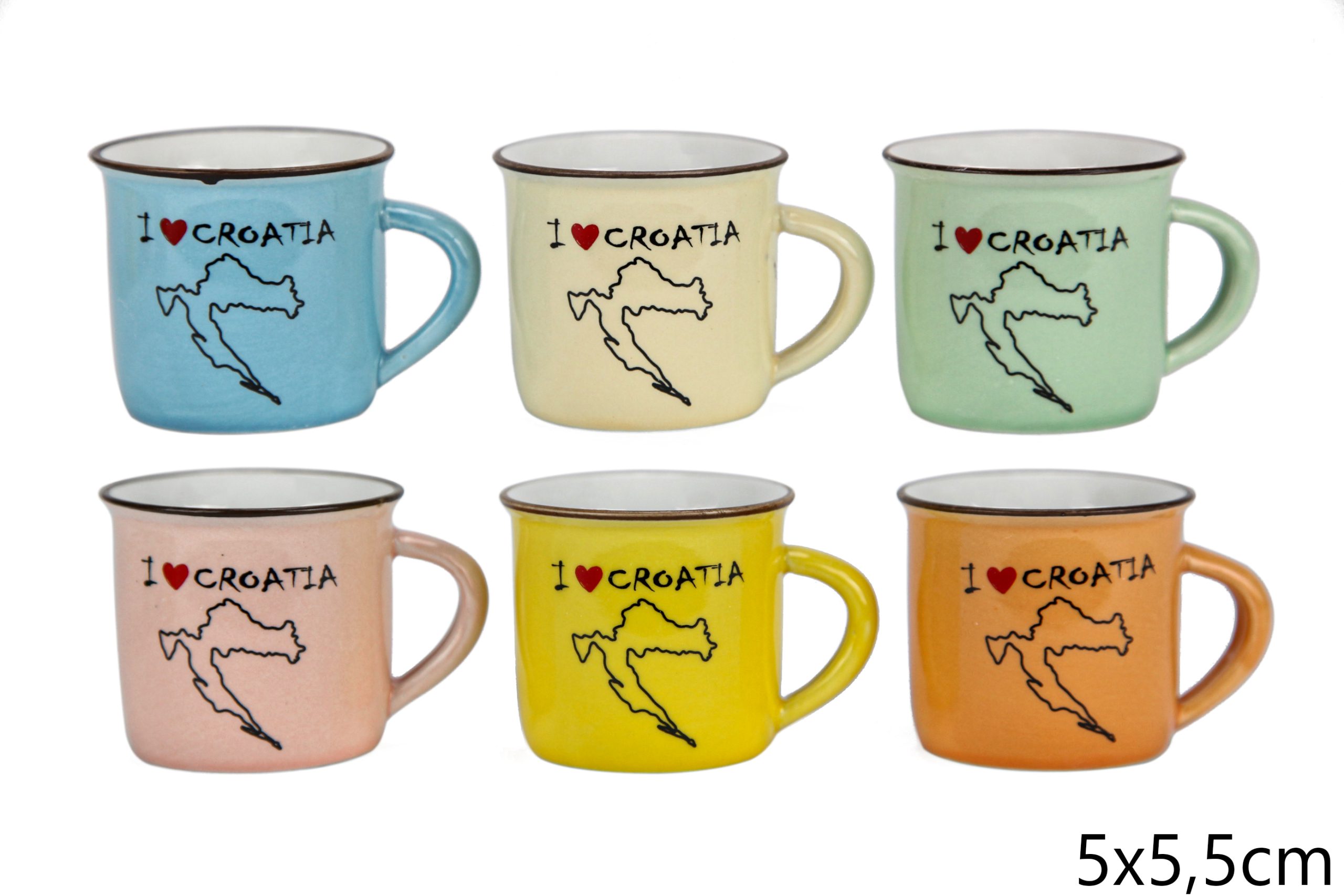 Bijelo-plava keramička šalica s ribom i natpisom, Croatia