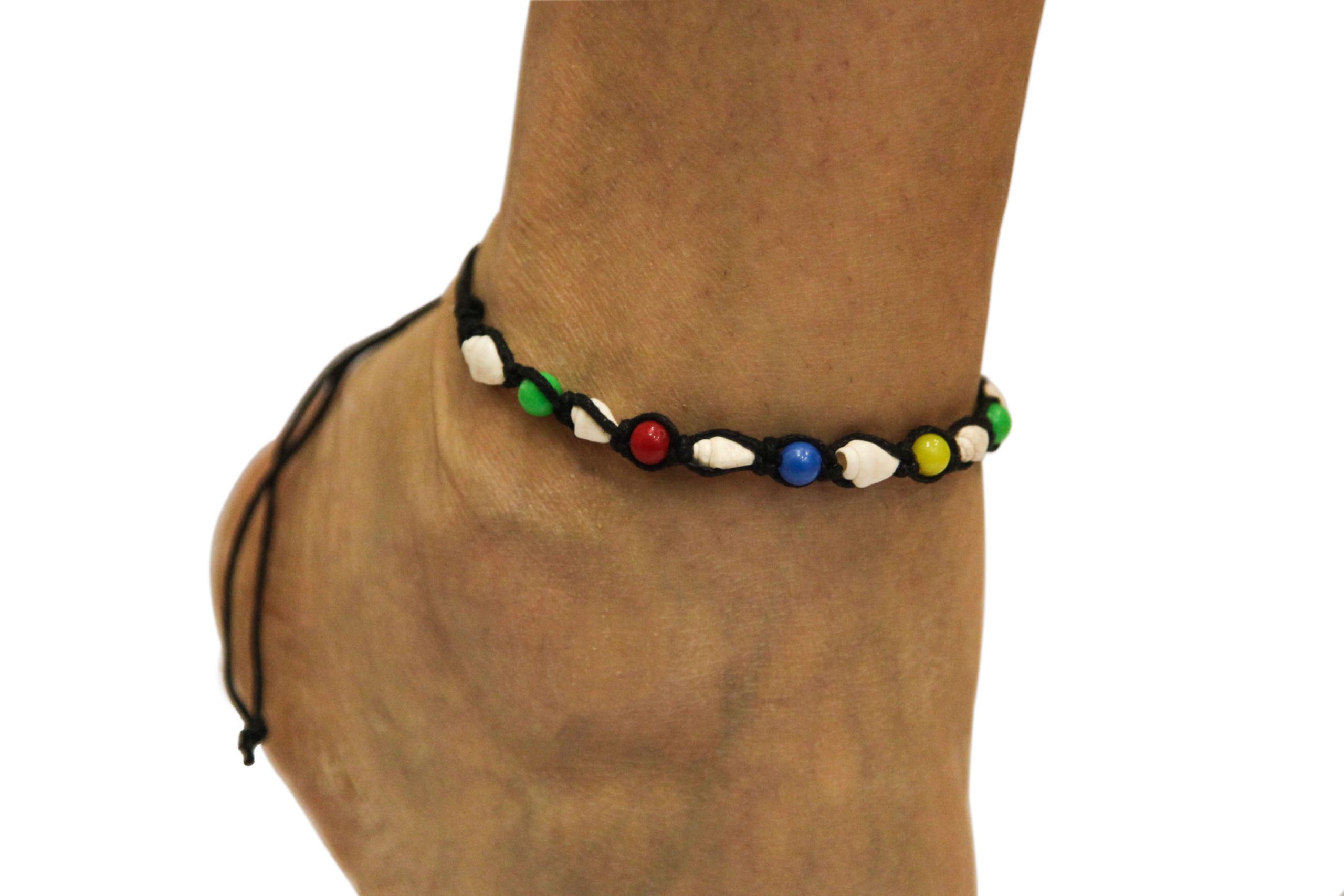 Nanožnice s više kauri školjkica na raznim bojama konopa (SET 12 kom.)