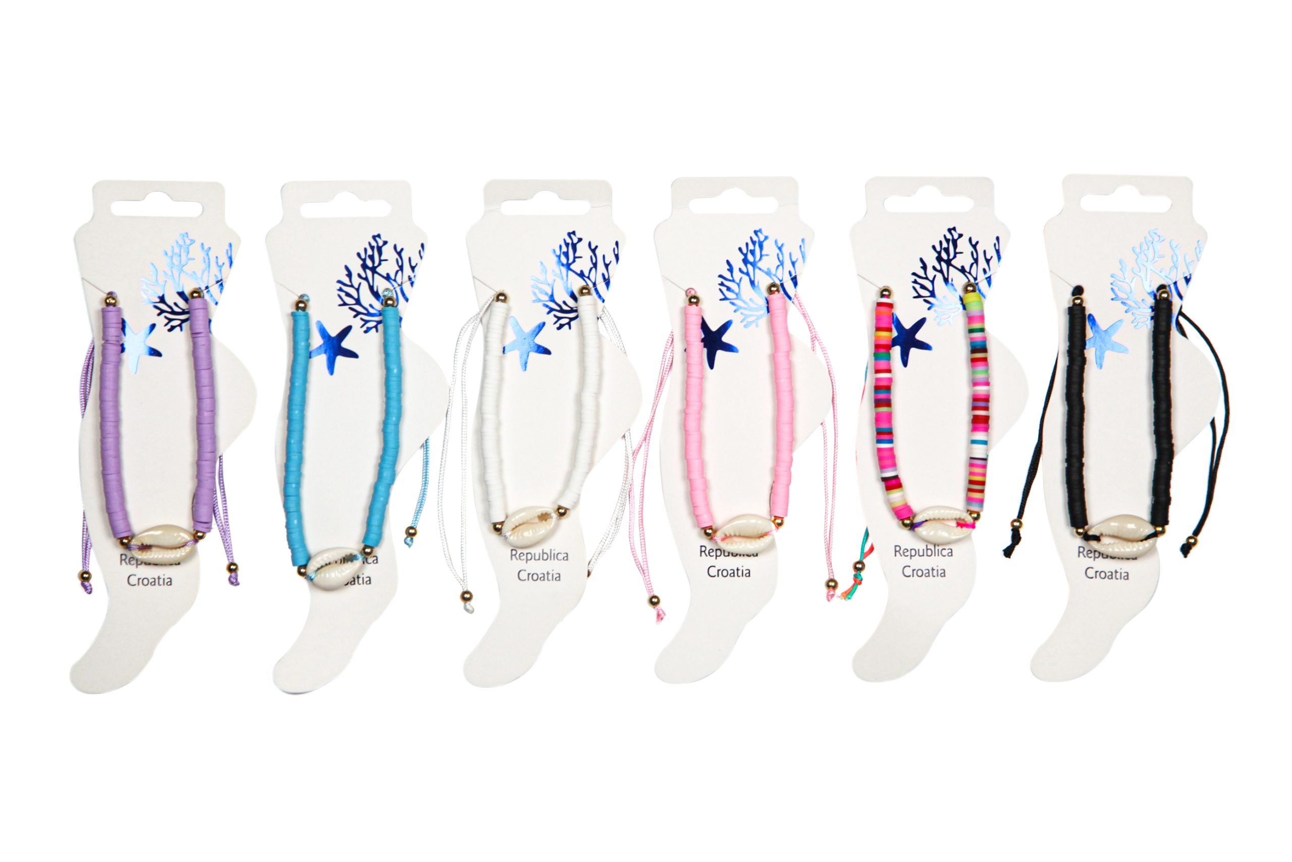 Nanožnice s Nassa školjkicama i raznobojnim perlicama (SET 12 kom.)