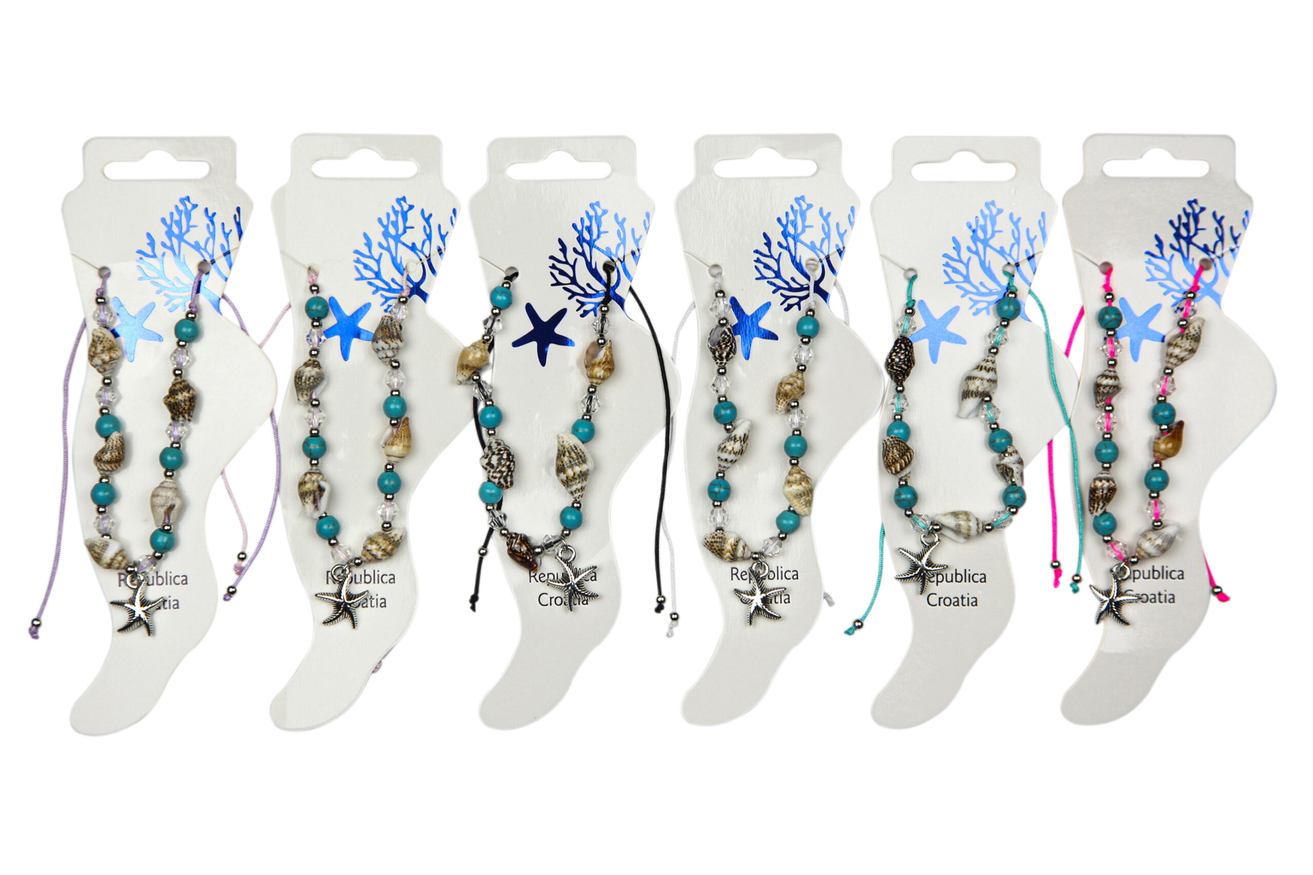 Nanožnice s Nassa školjkicama i raznobojnim perlicama (SET 12 kom.)