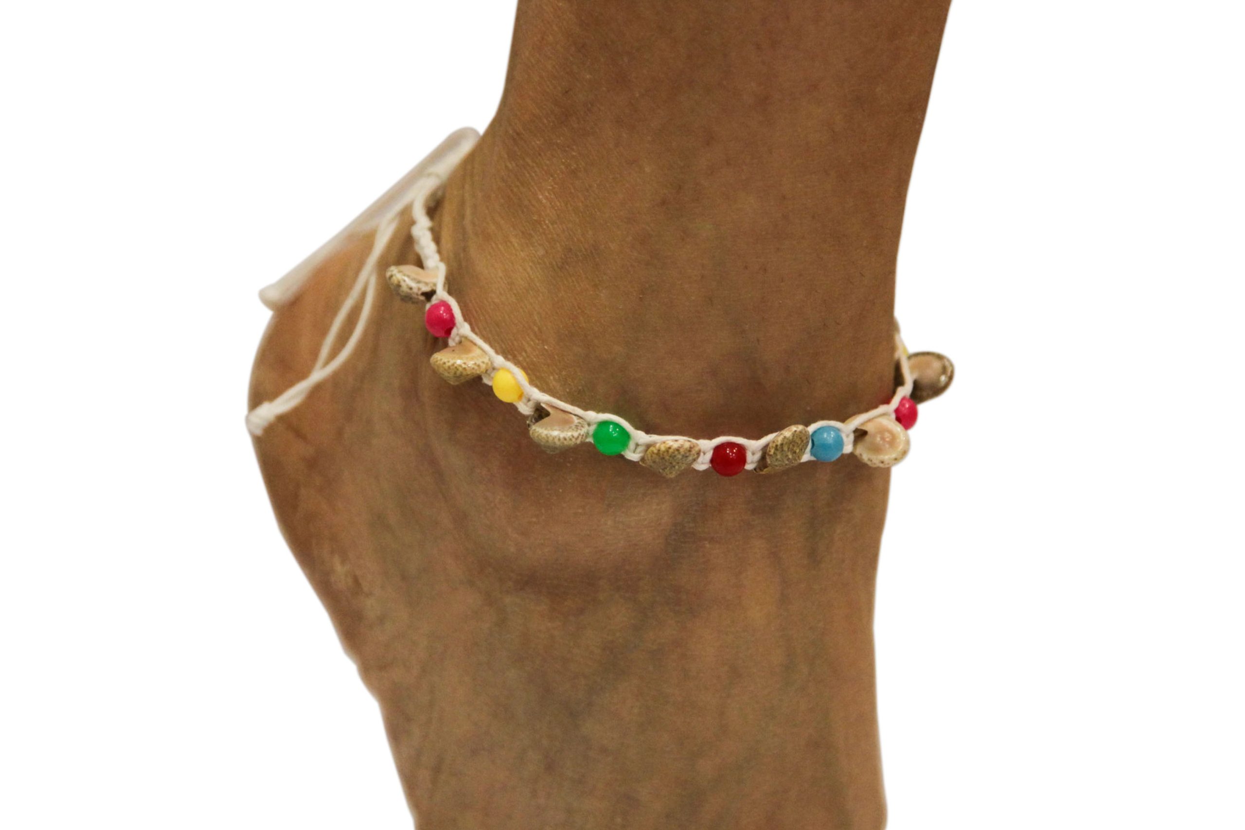 Nanožnice s kauri školjkicama na raznobojnim špagama (SET 12 kom.)