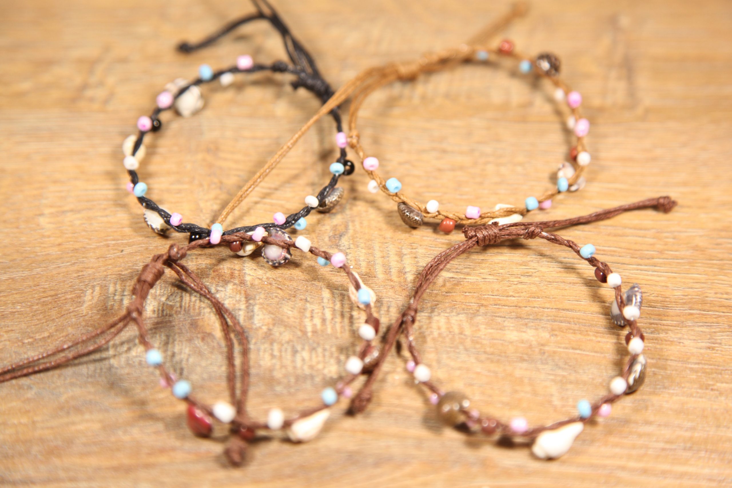 Narukvice od konopa sa školjkama i puževima te raznobojnim perlicama (SET 50 kom.)