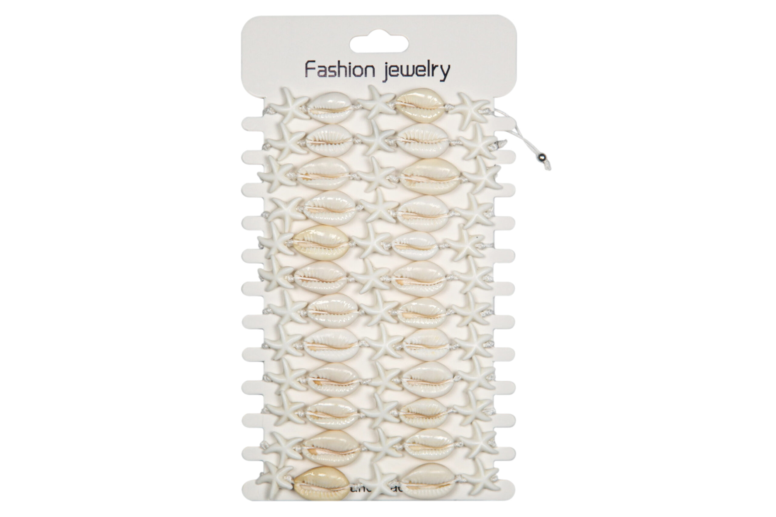 Naslovna » Trgovina » Nakit » Narukvice » Narukvice s bijelim zvijezdama i kauri školjkicama (SET 12 kom.)