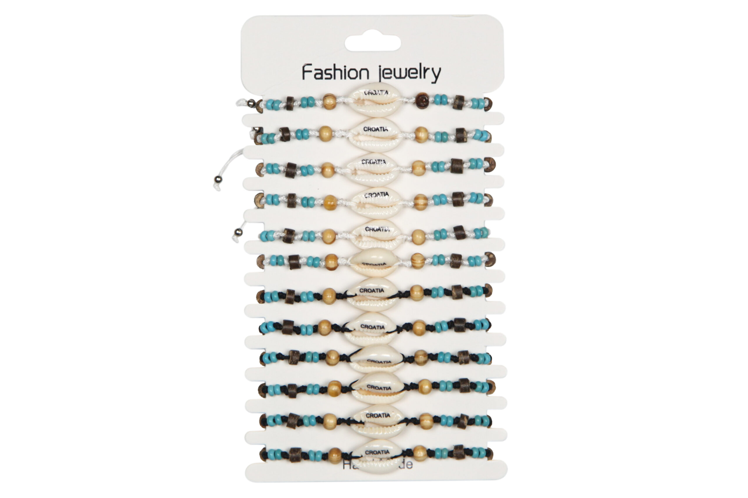 Naslovna » Trgovina » Nakit » Narukvice » Narukvice s kauri školjkicom s natpisom Croatia i drvenim perlicama (SET 12 kom.)