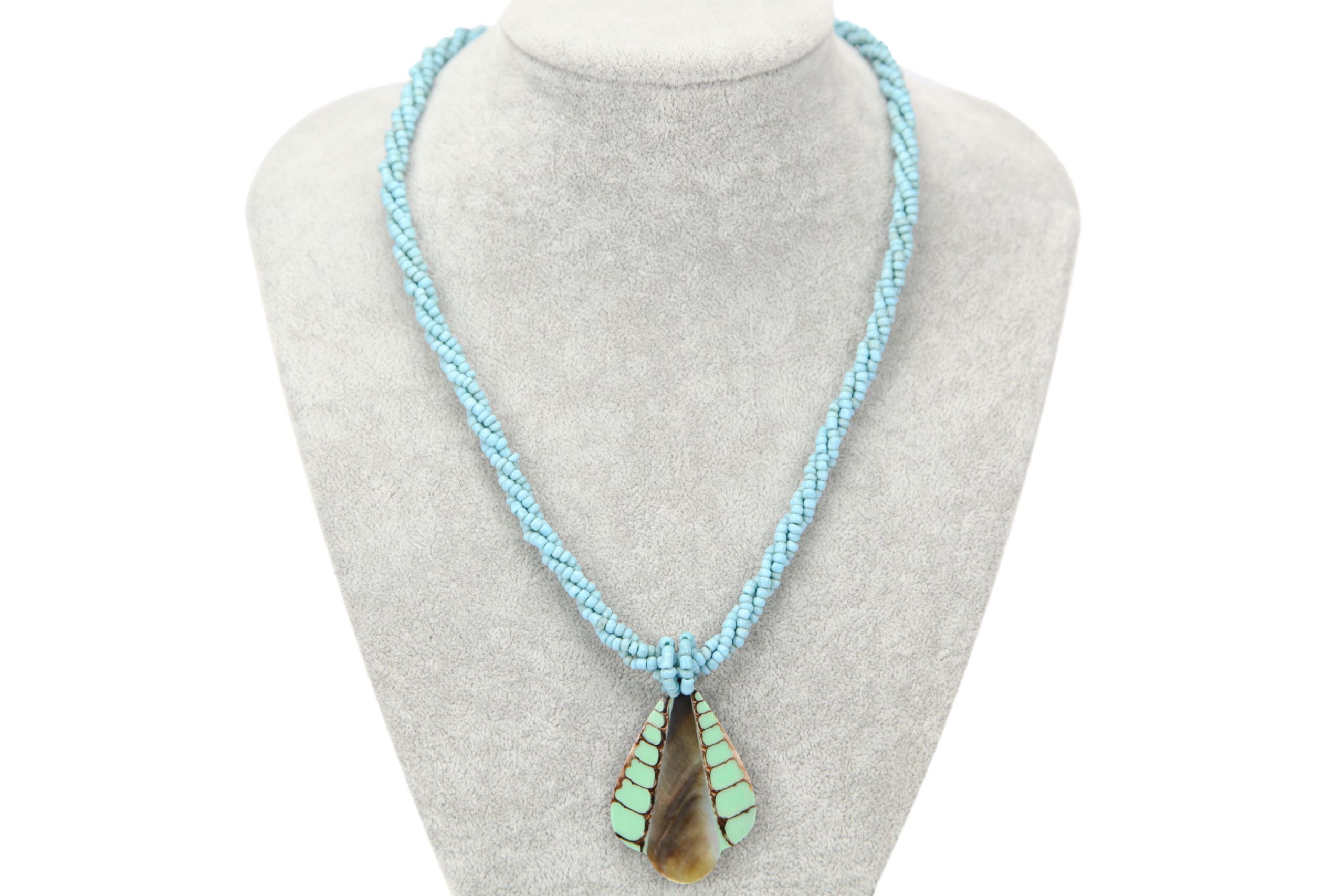 Naslovna » Trgovina » Nakit » Ogrlice » Ogrlica od tirkiznih perlica s privjeskom od zelene školjke