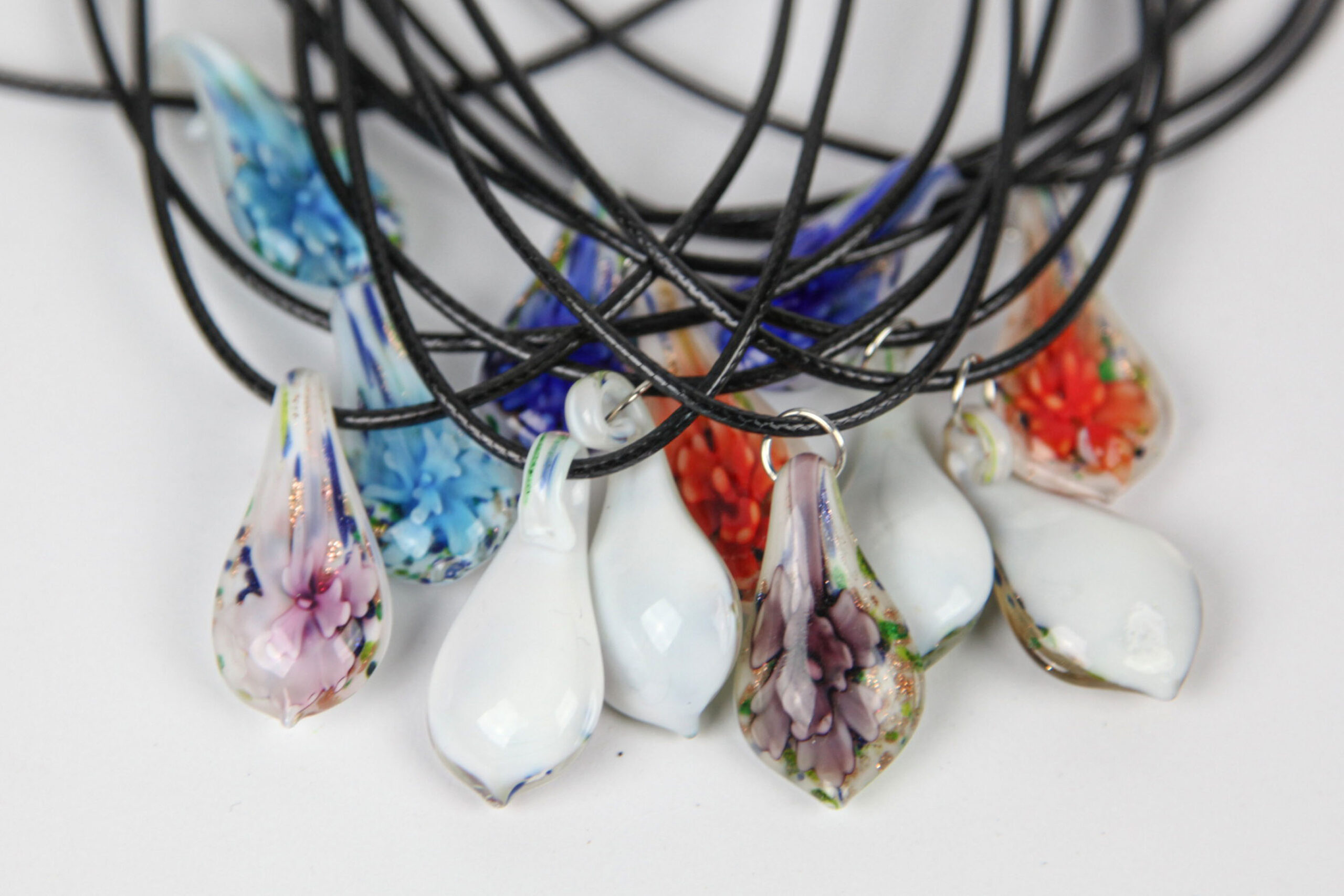 Naslovna » Trgovina » Nakit » Ogrlice » Ogrlice na crnom konopu, cvijet u bijeloj kapljici (SET 12 kom.)