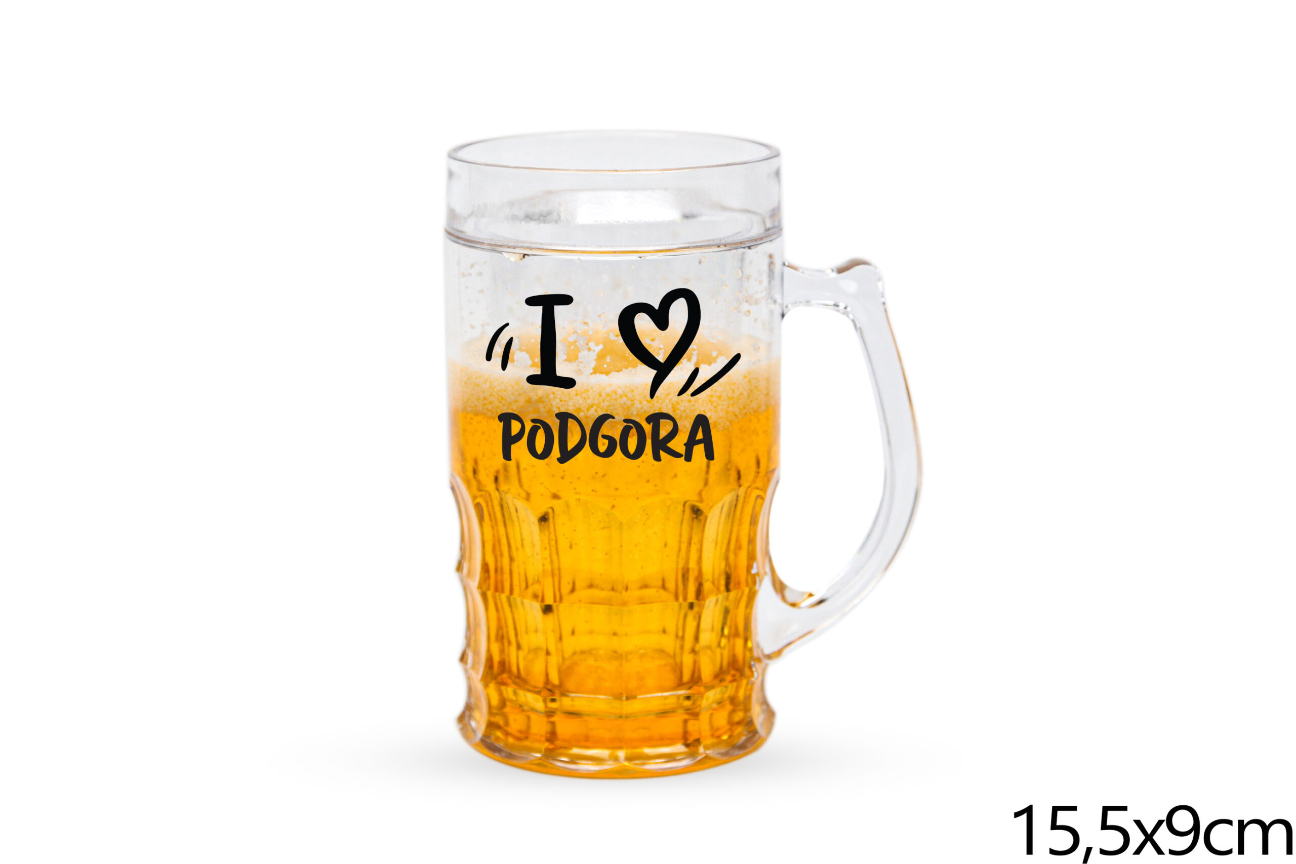 Plastična krigla s tekućinom, I love Podgora
