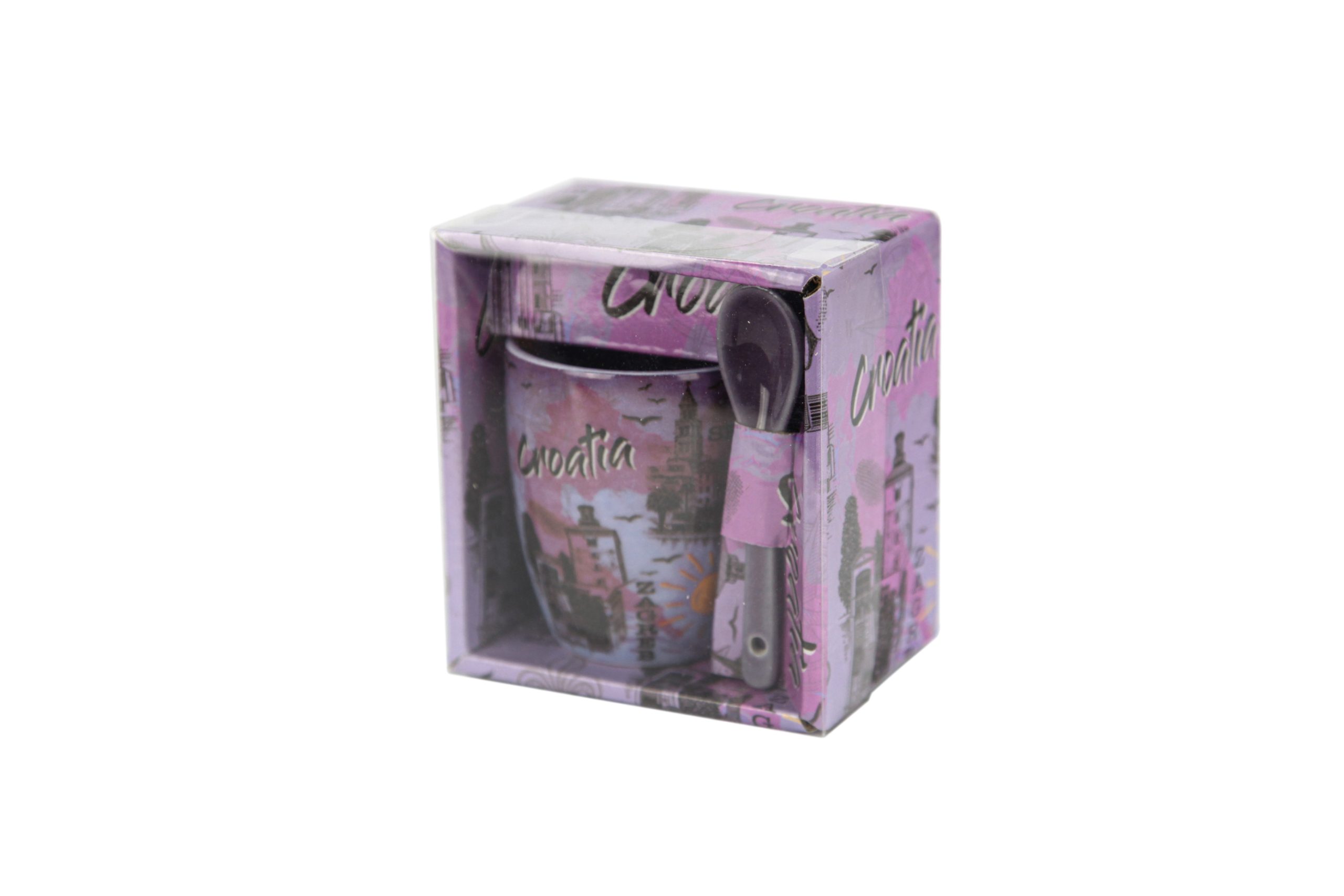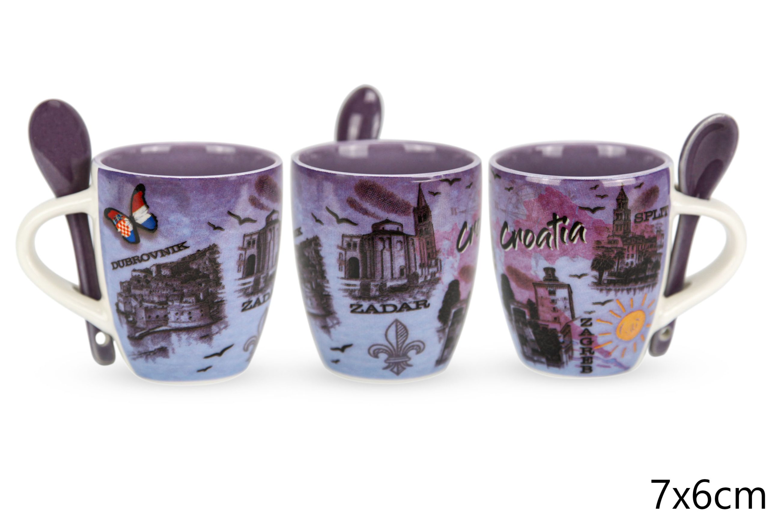 Bijelo-plava keramička šalica s ribom i natpisom, Croatia