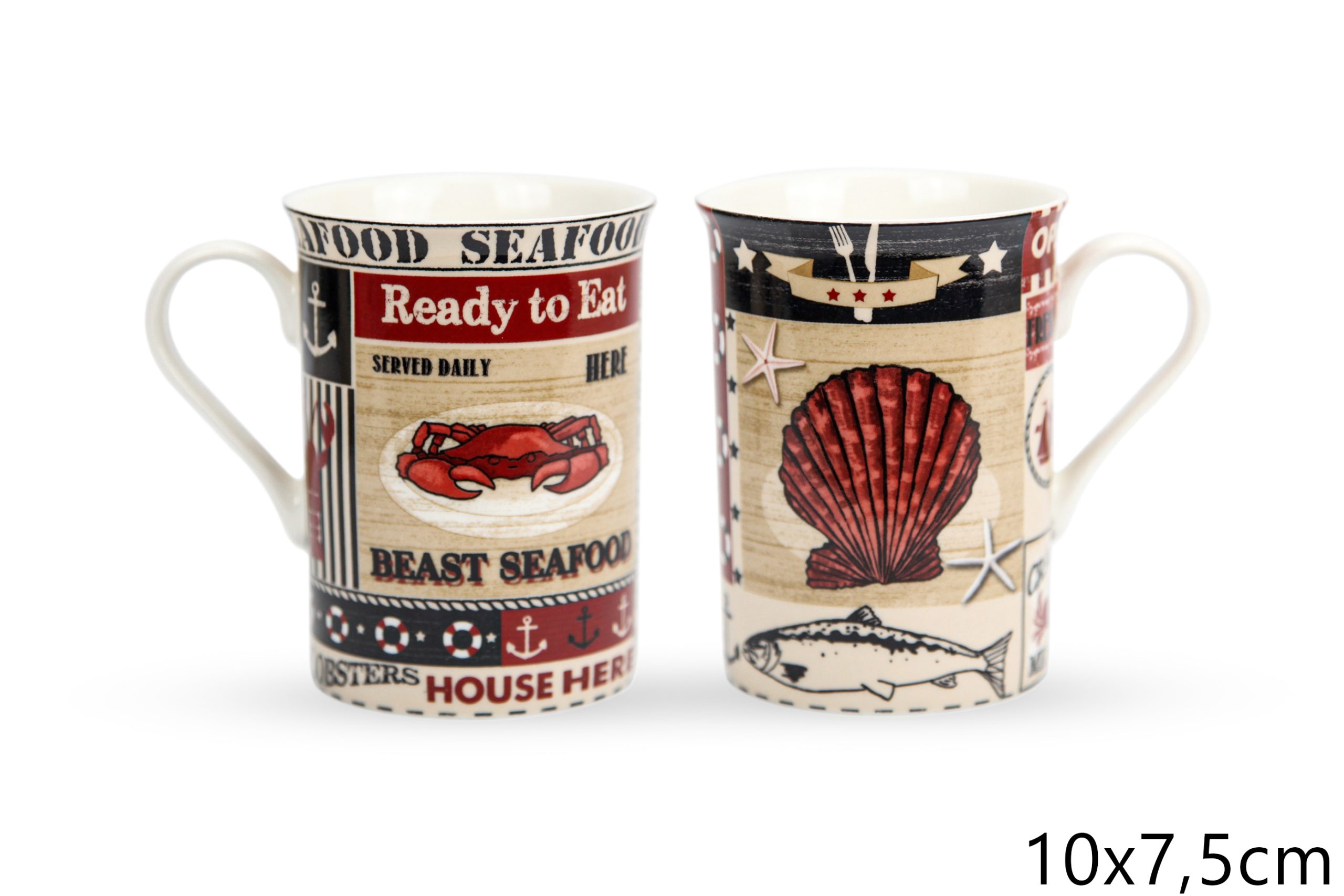Porculanske šalice riblji jelovnik, školjka lepeza i rak (SET 6 kom.)
