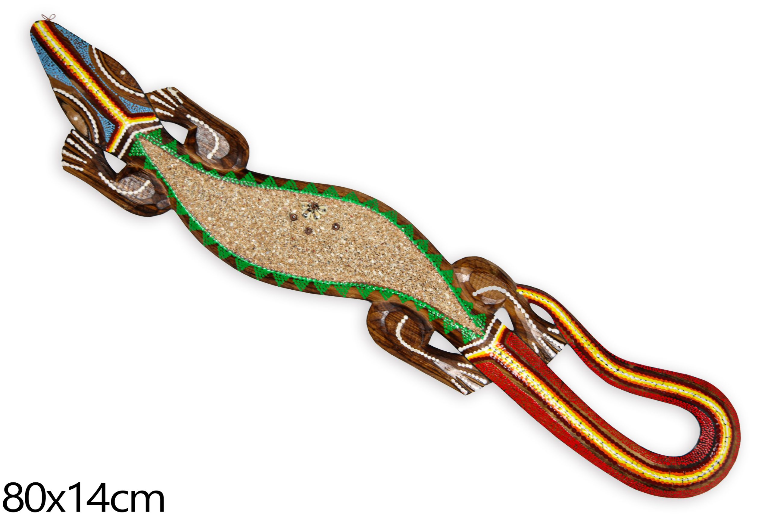 Naslovna » Trgovina » Suveniri od drva » Smeđi gušter sa šarenim detaljima i pijeskom, 80cm