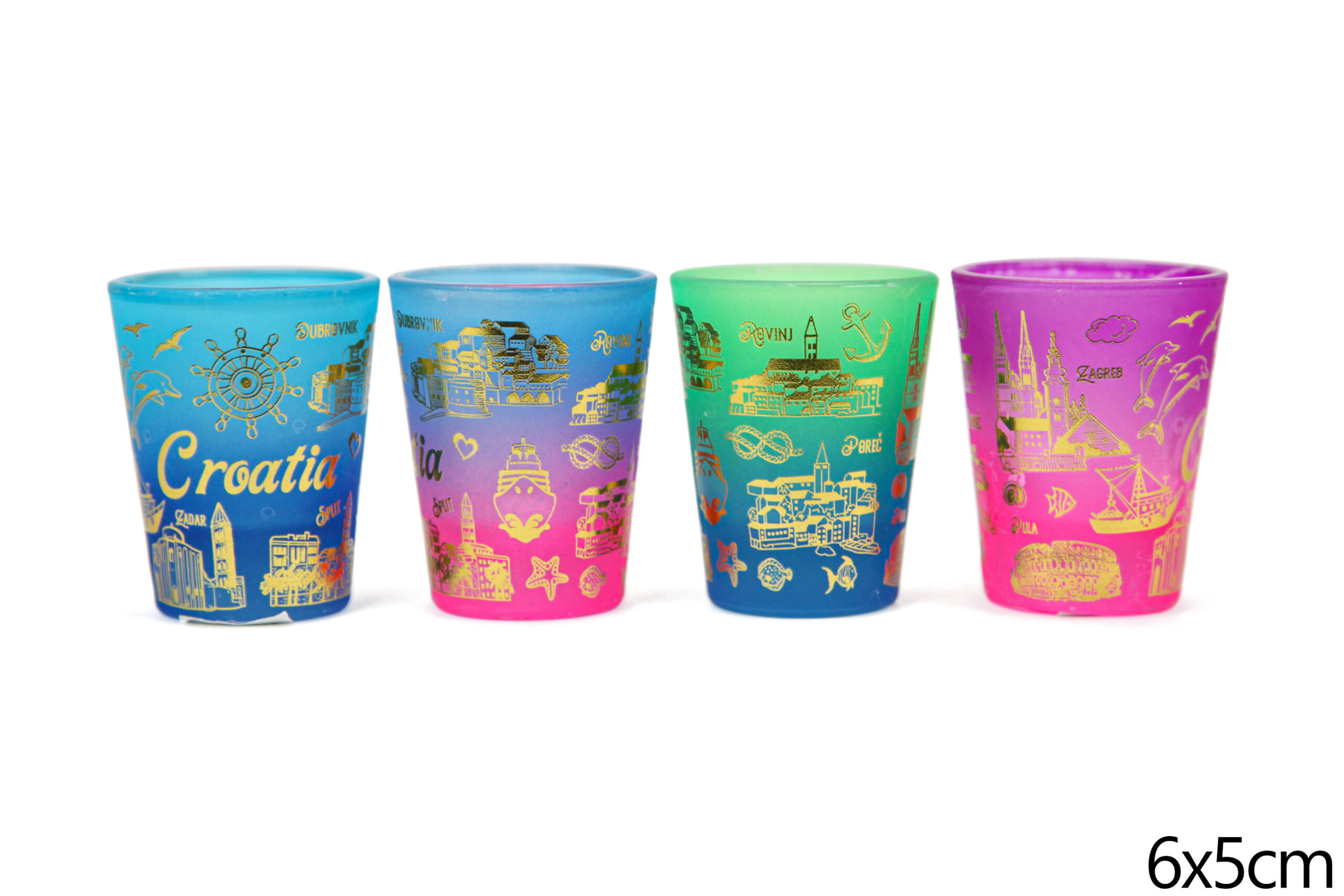 Staklene šarene čašice sa zlatnim detaljima, Croatia (SET 12 kom.)