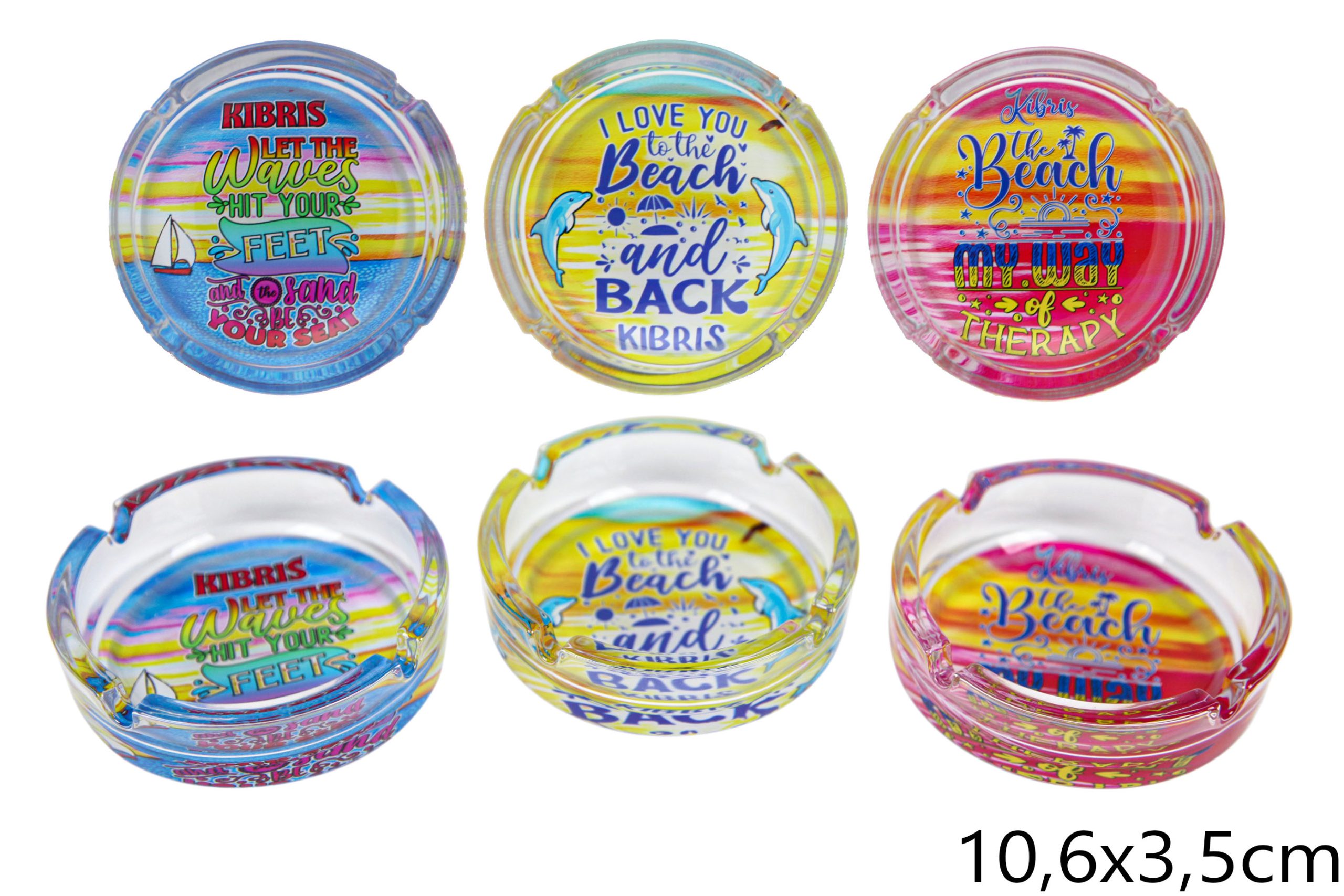 Bijela keramička pepeljara s tirkiznim stakalcima