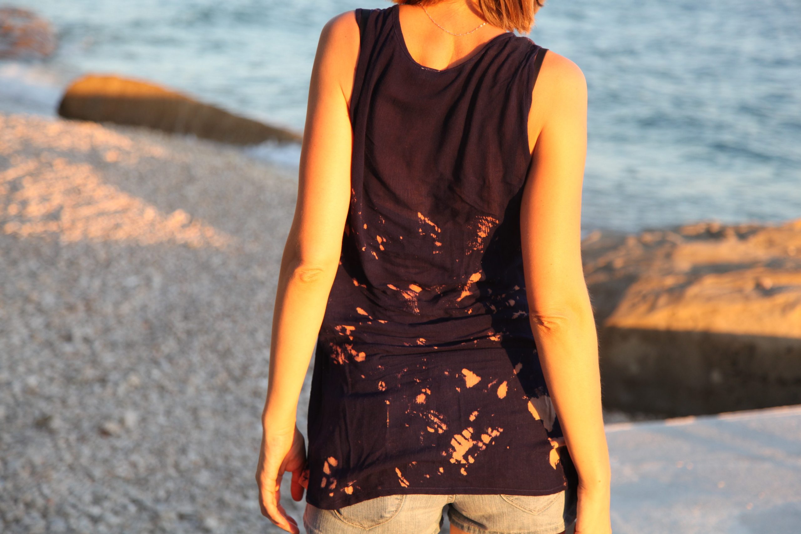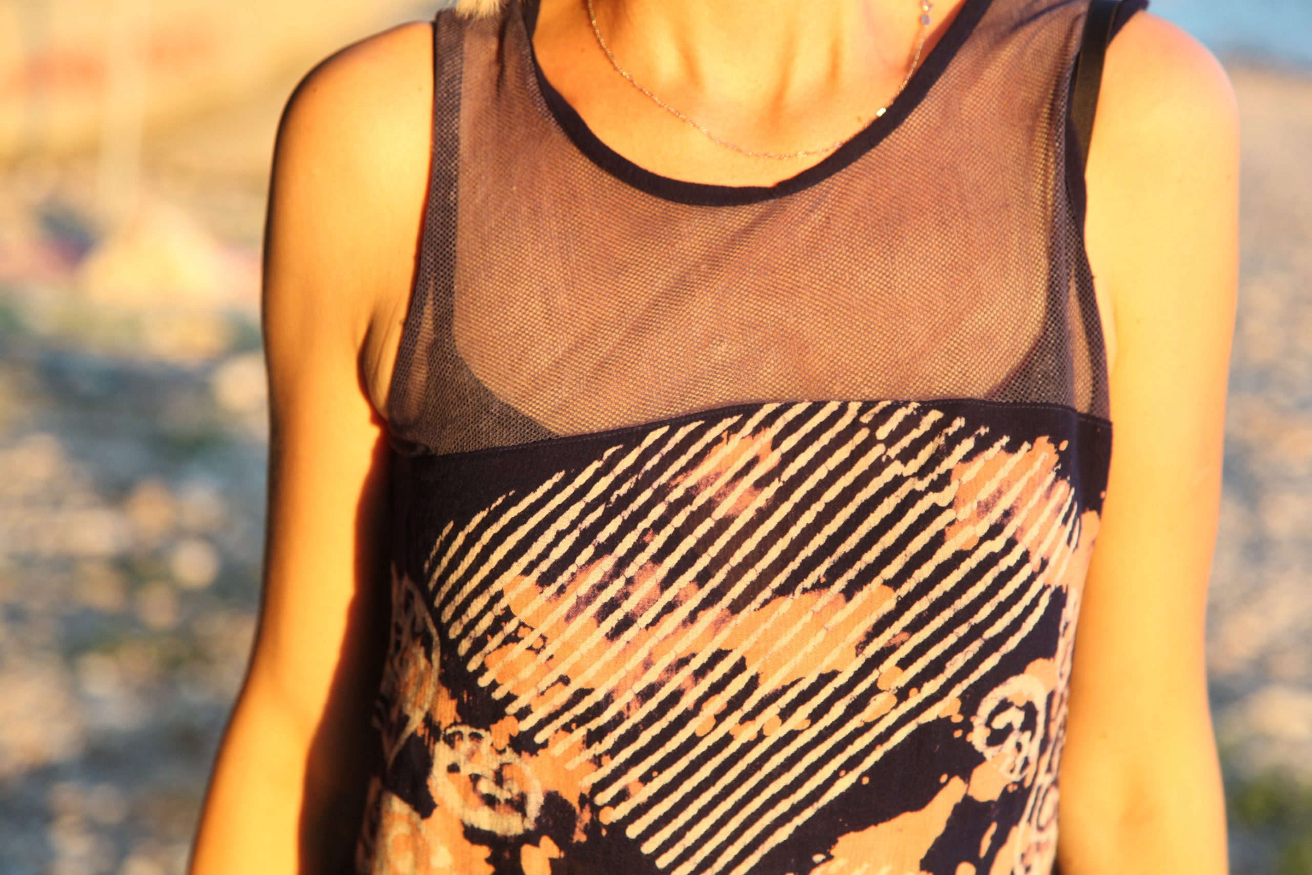 Crna haljina prošivena crvenim koncem