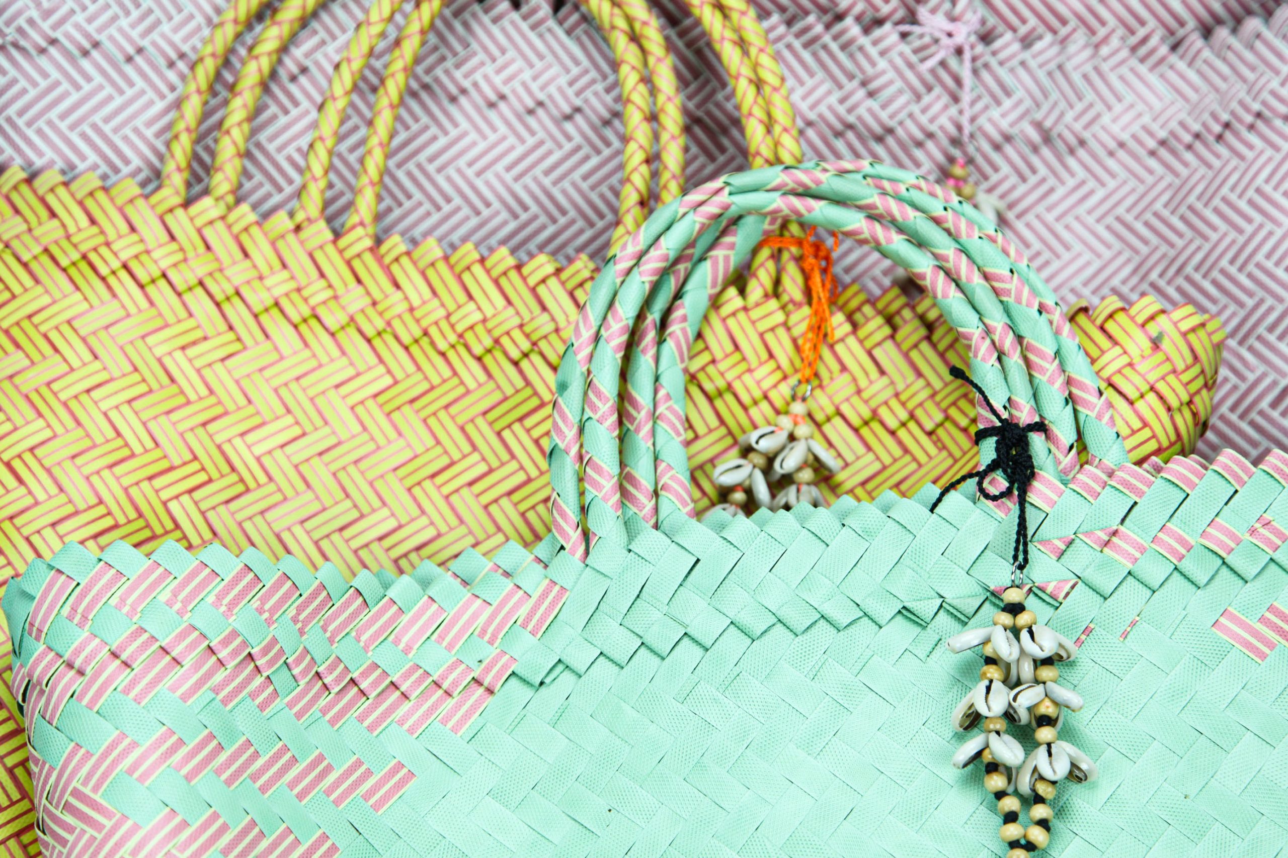 Naslovna » Trgovina » Textil » Torba od isprepletenih traka s privjeskom od školjke, razne boje