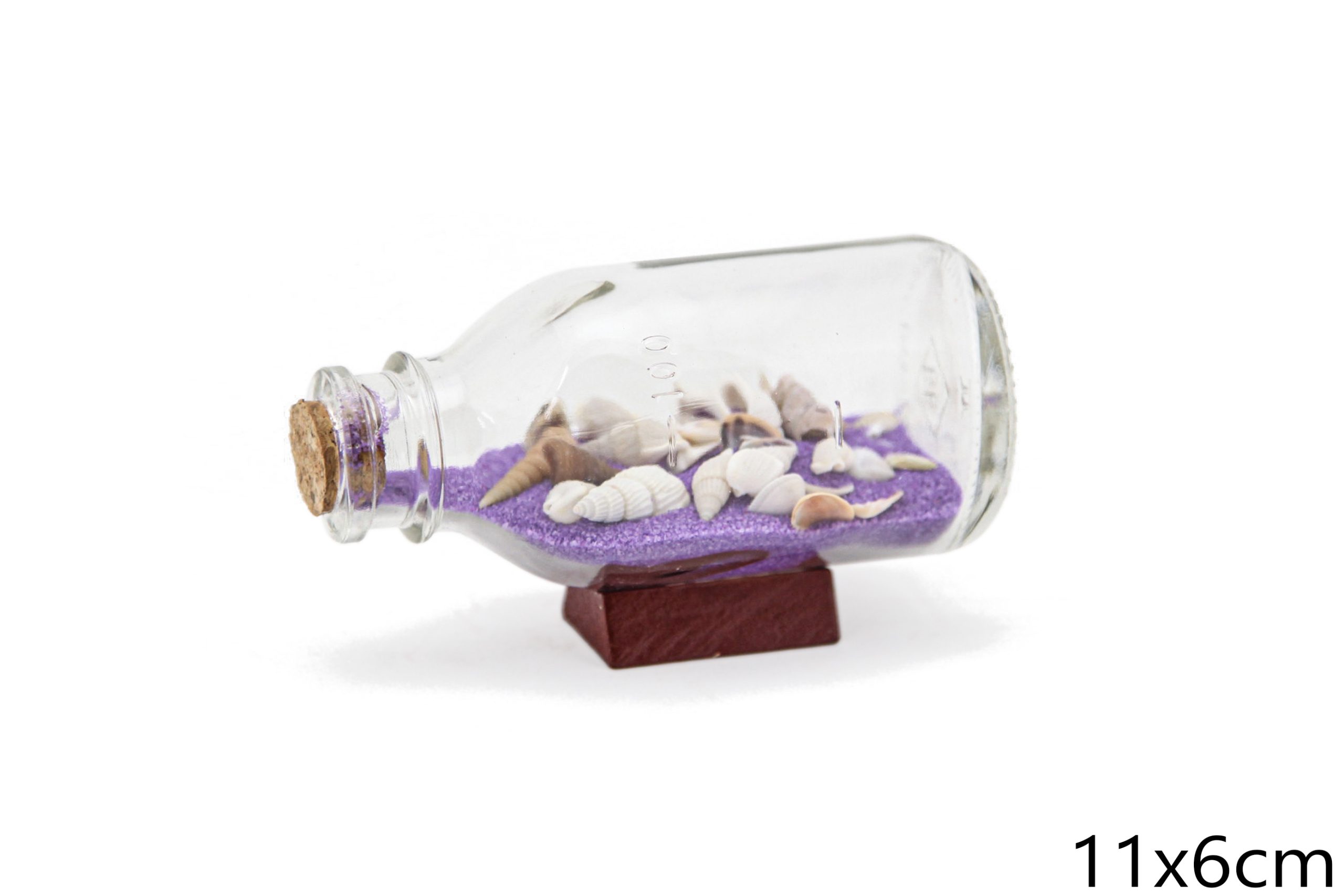 Ukrasna bočica na postolju, sa školjkicama, ljubičasti pijesak