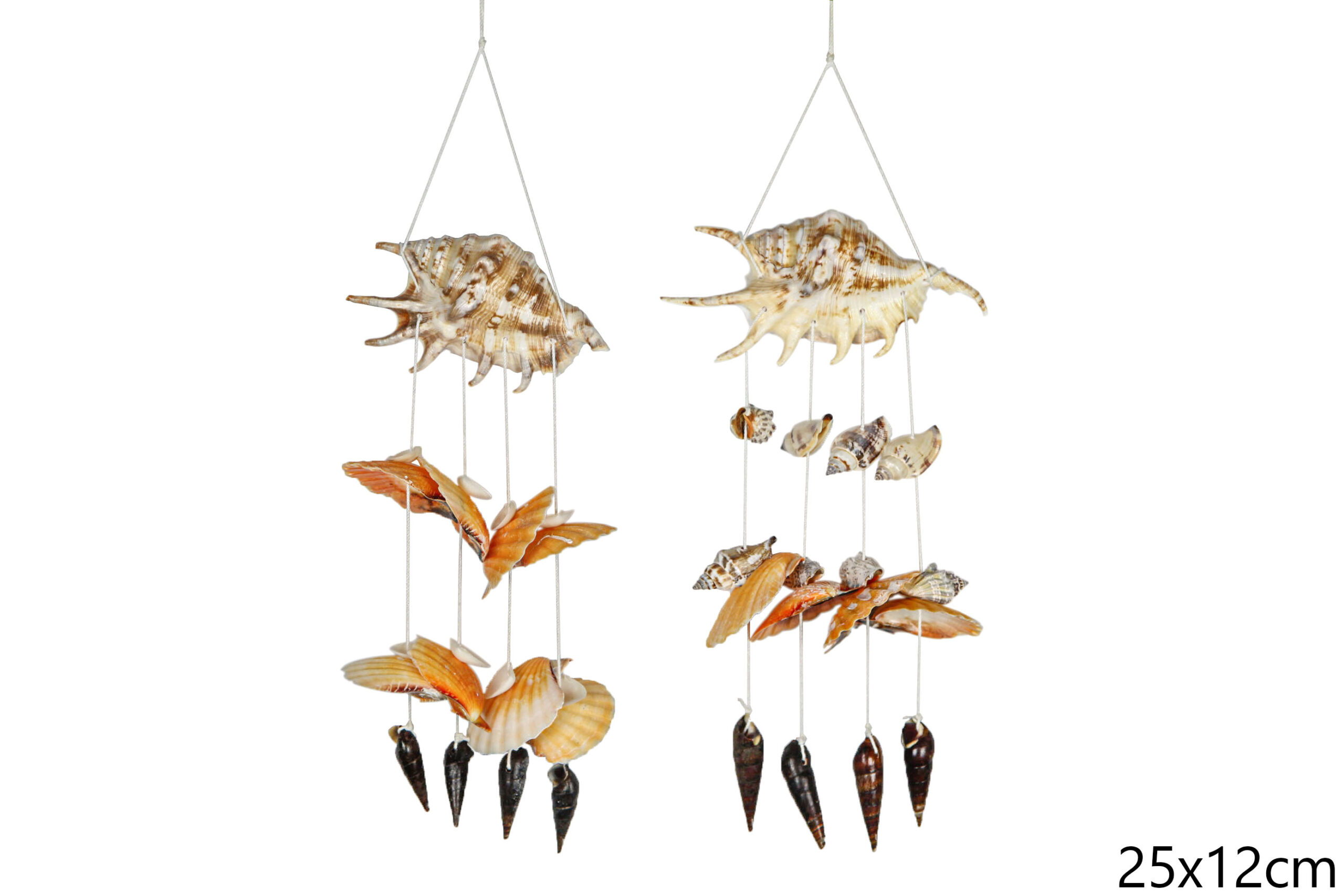 Naslovna » Trgovina » Visilice » Visilica sa školjkom Lambis, lepezama i crnim spiralama