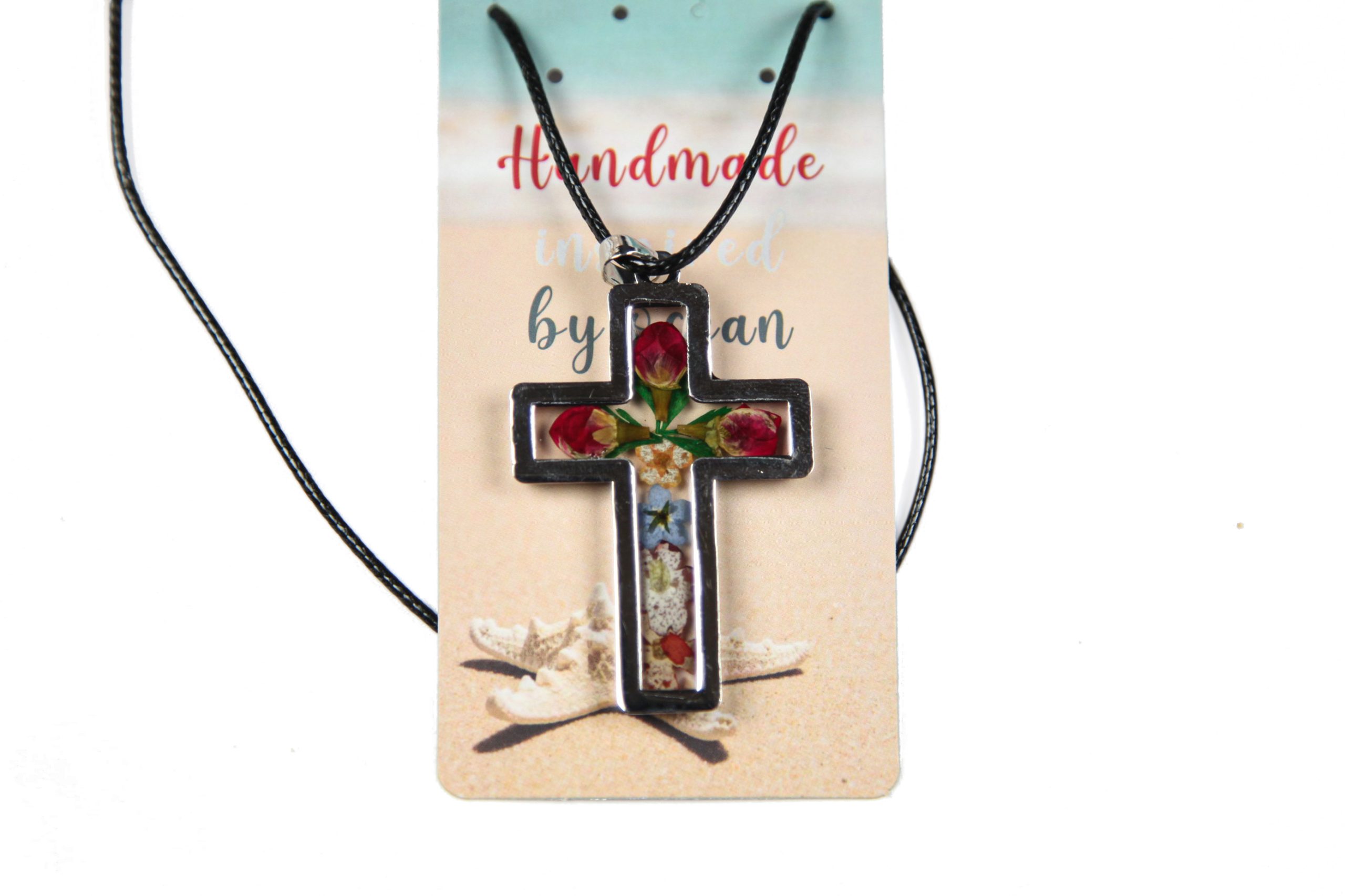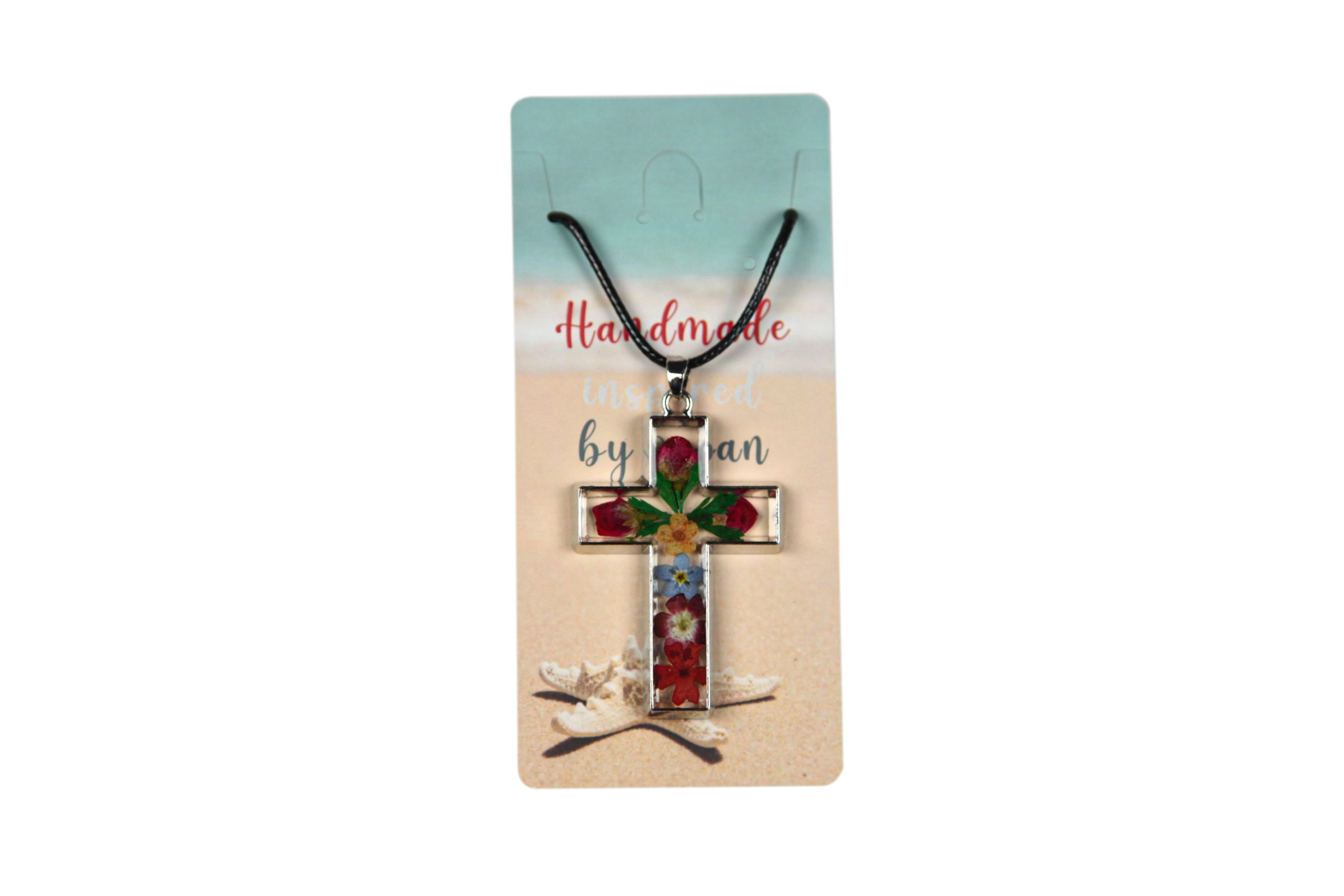 Naslovna » Trgovina » Nakit » Ogrlice » Vjerska ogrlica križ sa cvijećem zalivenim smolom
